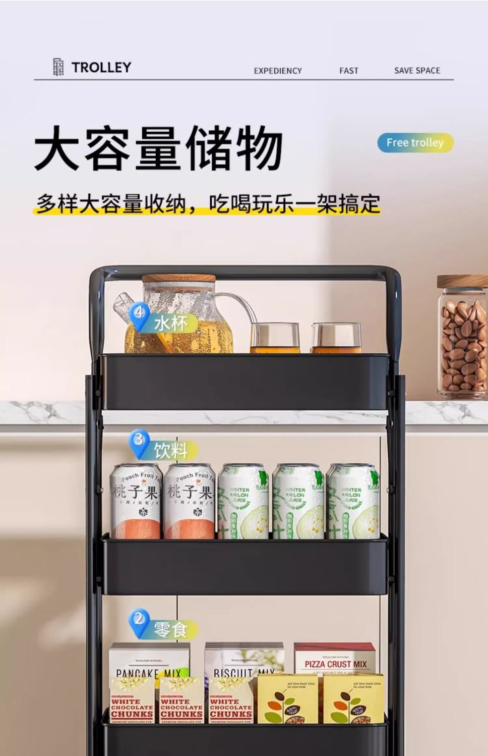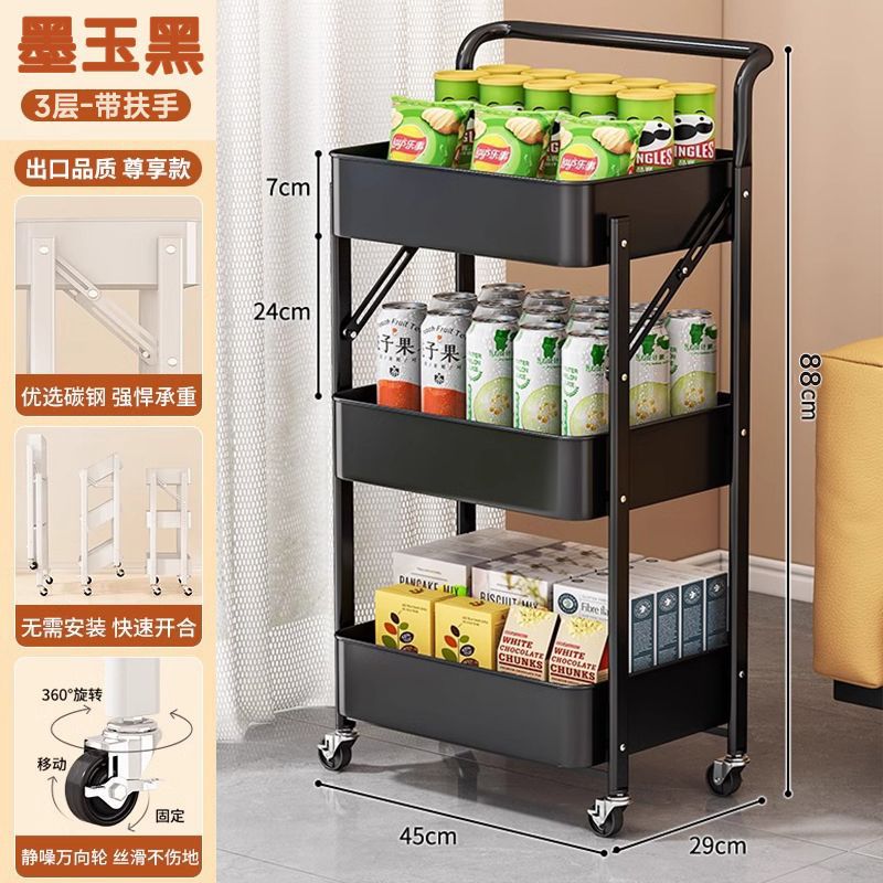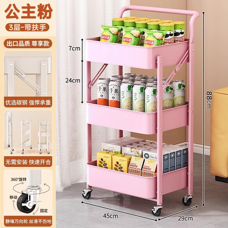 小推车置物架落地多层家用书架书柜可移动带轮折叠零食玩具收纳架