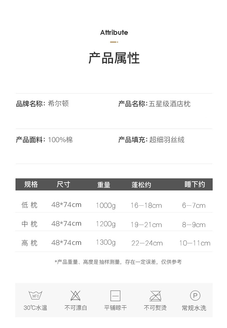 5 성급 베개 베개 빨 수있는 깃털 벨벳 베개 호텔 베개 대외 무역 선물 도매 판매