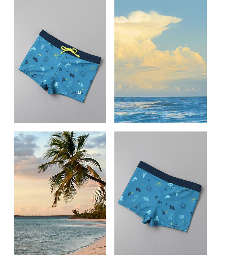 어린이 복서 수영 트렁크 귀여운 만화 물고기 소년 4 각 수영 트렁크 빠른 건조 전문 수영장 나일론 수영 트렁크