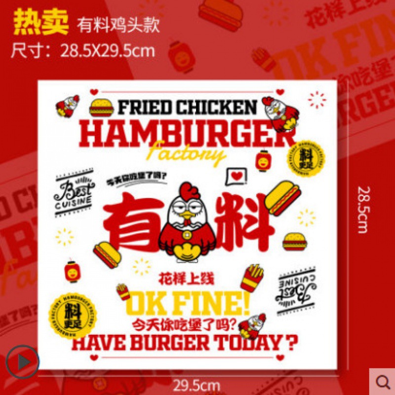 • 최고급 맛있는 28*29cm 햄버거 종이 100장