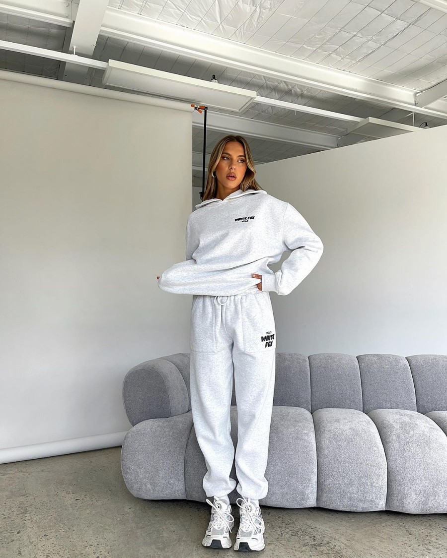 欧美跨境春秋冬新款卫衣套装时尚运动LOGO长袖套头连帽卫衣两件套