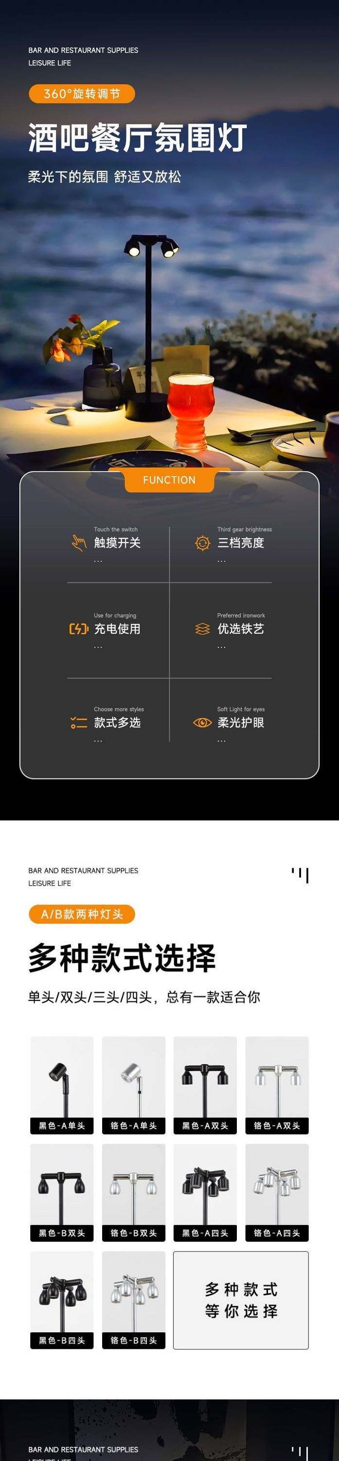 • 블랙 탑 + 듀얼 램프 헤드 + 따뜻한 조명 + 고속 충전 데이터 케이블