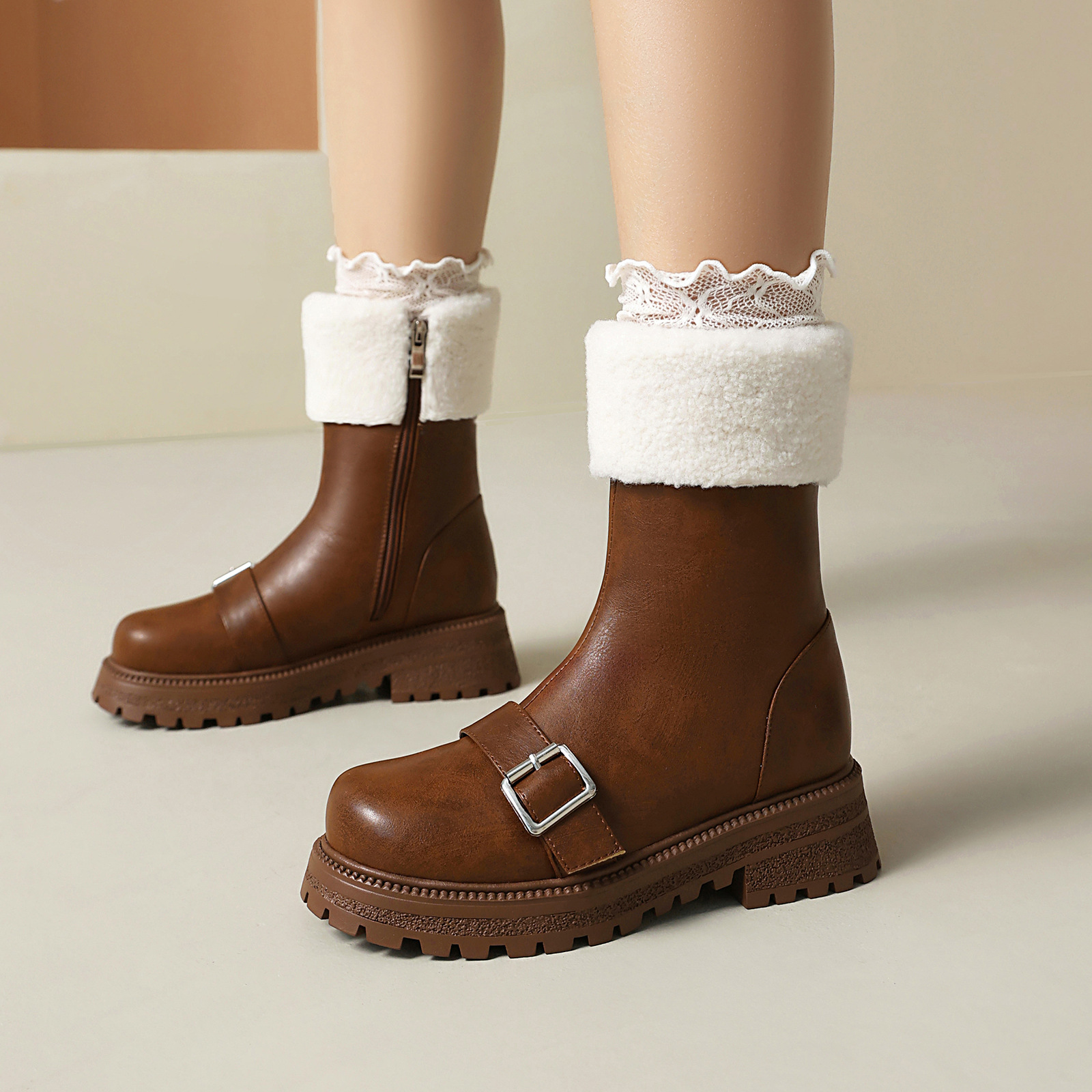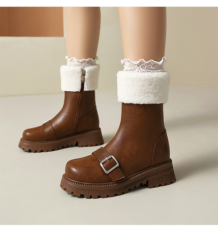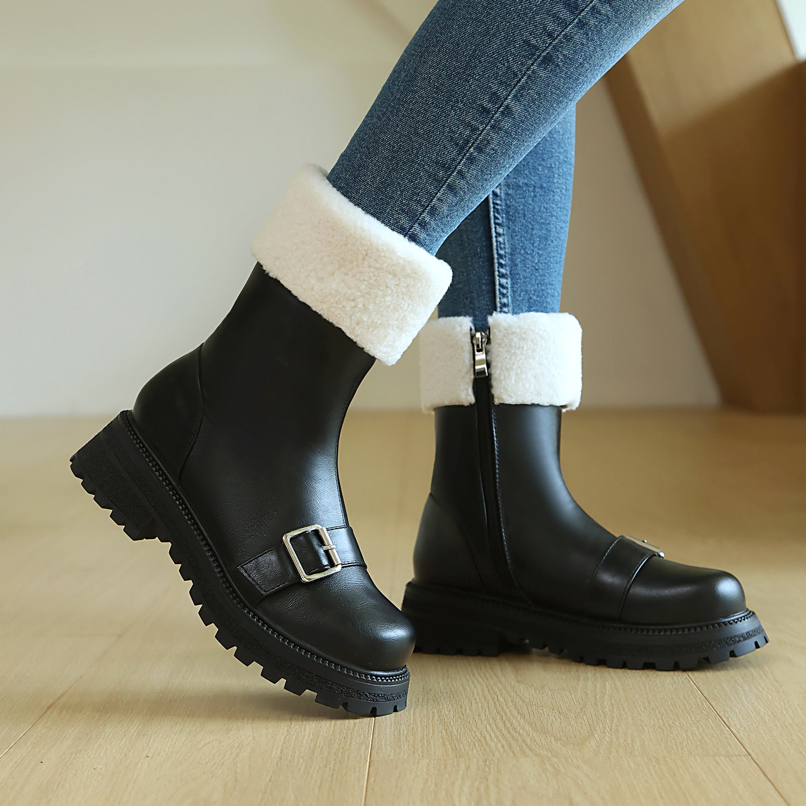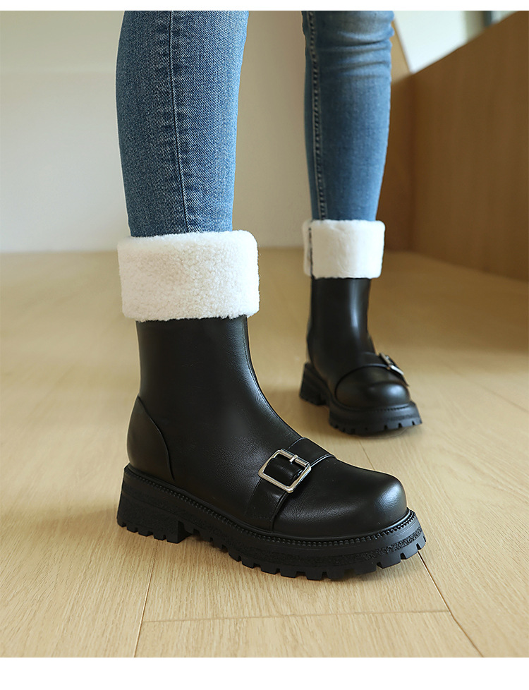 여자 부츠 어린이 마틴 부츠 겨울 기모 여성 가죽 부츠 큰 아이 학생 캐주얼 오토바이 짧은 부츠