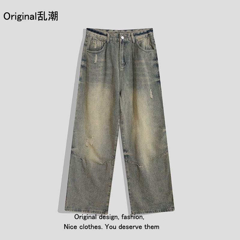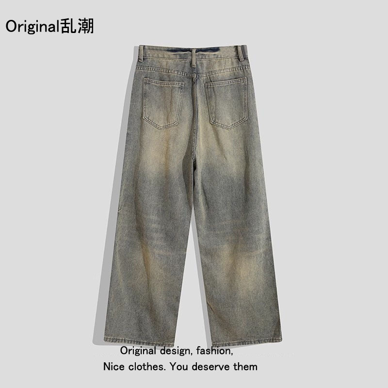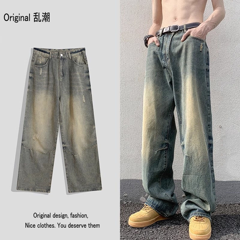 홍콩 스타일 유행 남성 여름 새로운 2024 개인 편지 청바지 힙합 Ins 트렌디 하이 스트리트 트렌디 한 바지