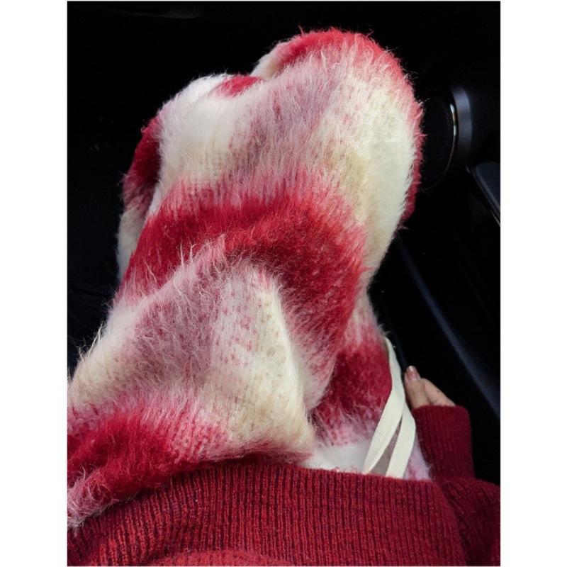 인터넷 인기있는 크리스마스 스타일 다크 브라운 줄무늬 넓은 다리 바지 여성 가을 및 겨울 새로운 디자인 센스 니쉬 소프트 왁스 마오 마오 캐주얼 바지스토어 가기