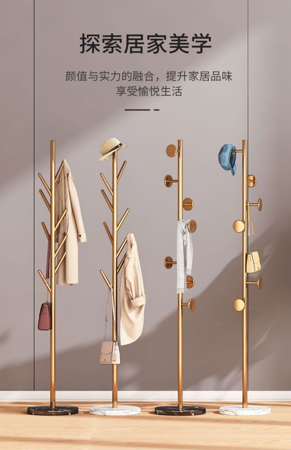 • 3극 나뭇가지 모델, 라이트 럭셔리 골드, 화이트 대리석 베이스