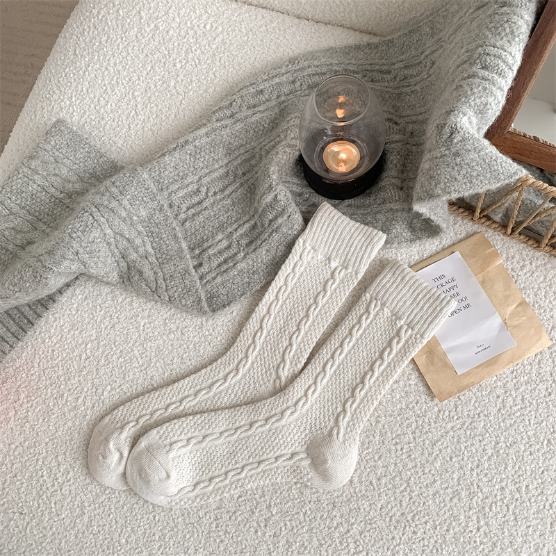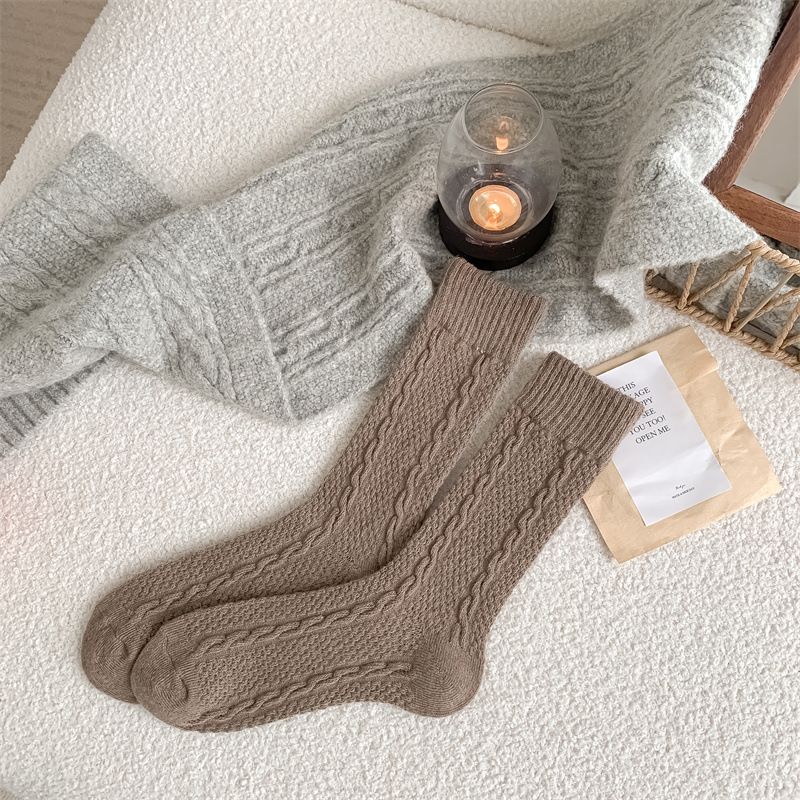 한국 스타일 겨울 양말 Ins 스타일 클래식 솔리드 컬러 트위스트 울 양말 여성용 미드 사이즈 양말 유행 따뜻한 여성용 양말