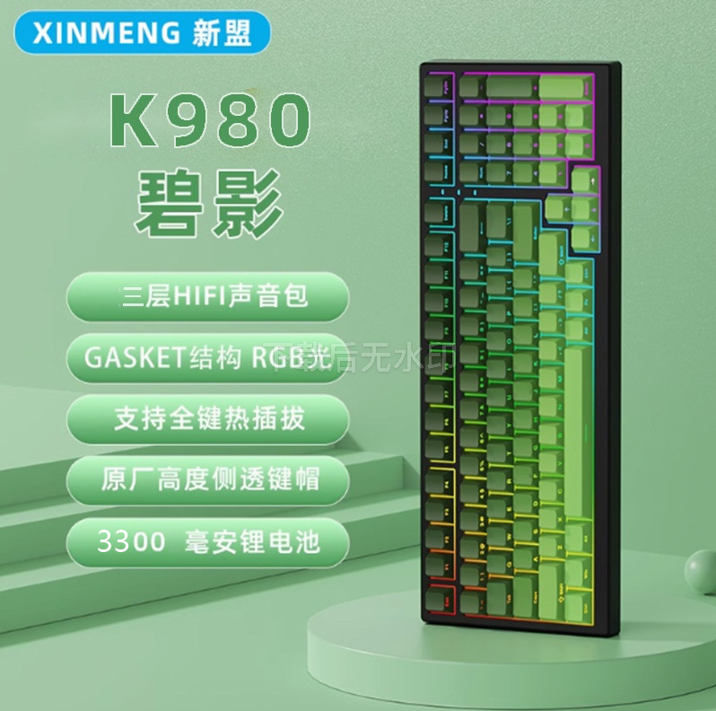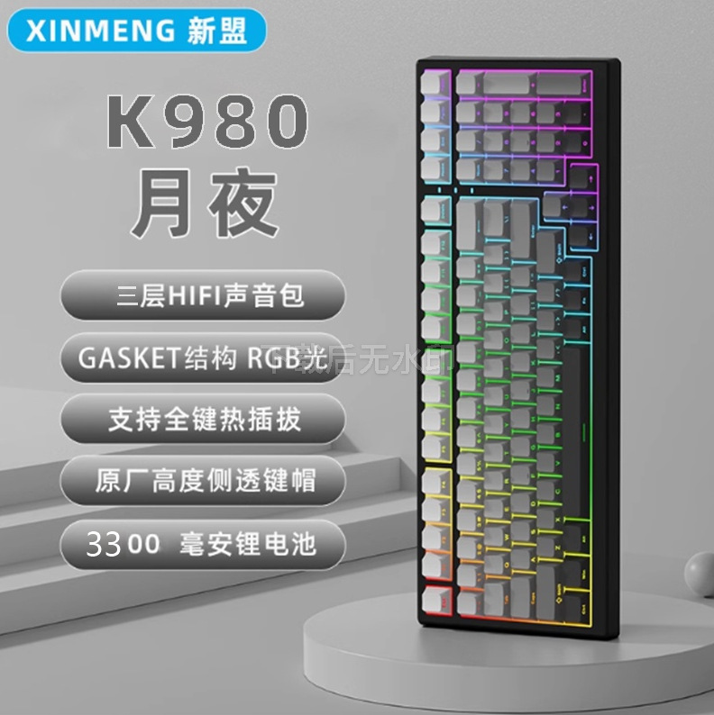 新盟K980侧刻三模机械键盘蓝牙无线有线机械键盘99键RGB背光渐变
