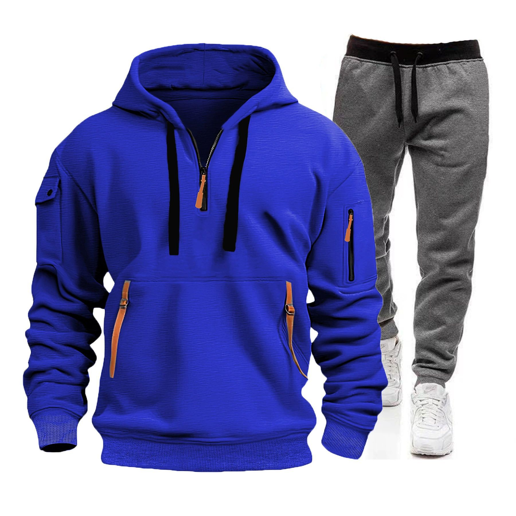 2025 국경 간 가을 겨울 스포츠 스웨터 세트 남자 멀티 포켓 지퍼 후드 운동복 스웨터 세트 라이트 플레이트스토어 가기