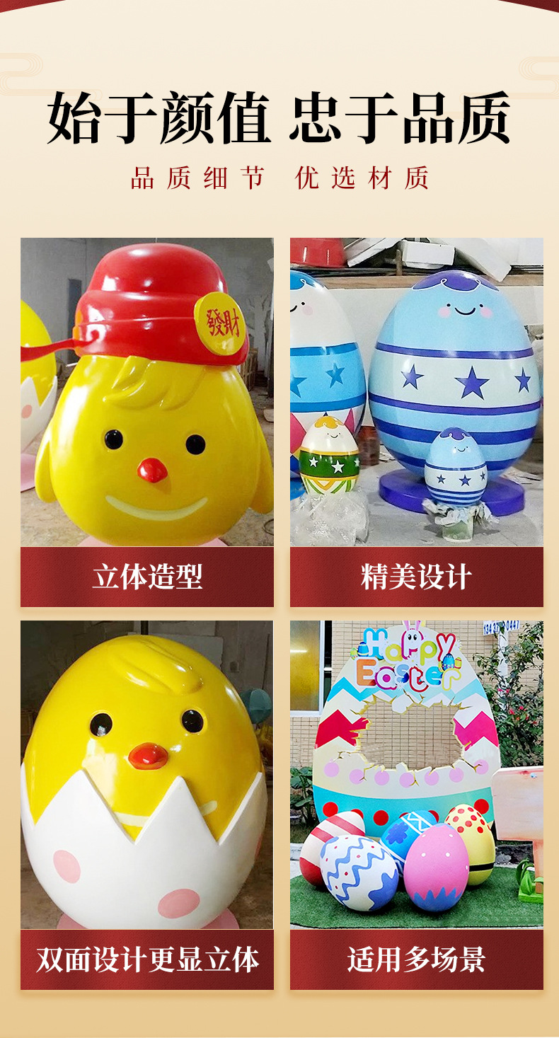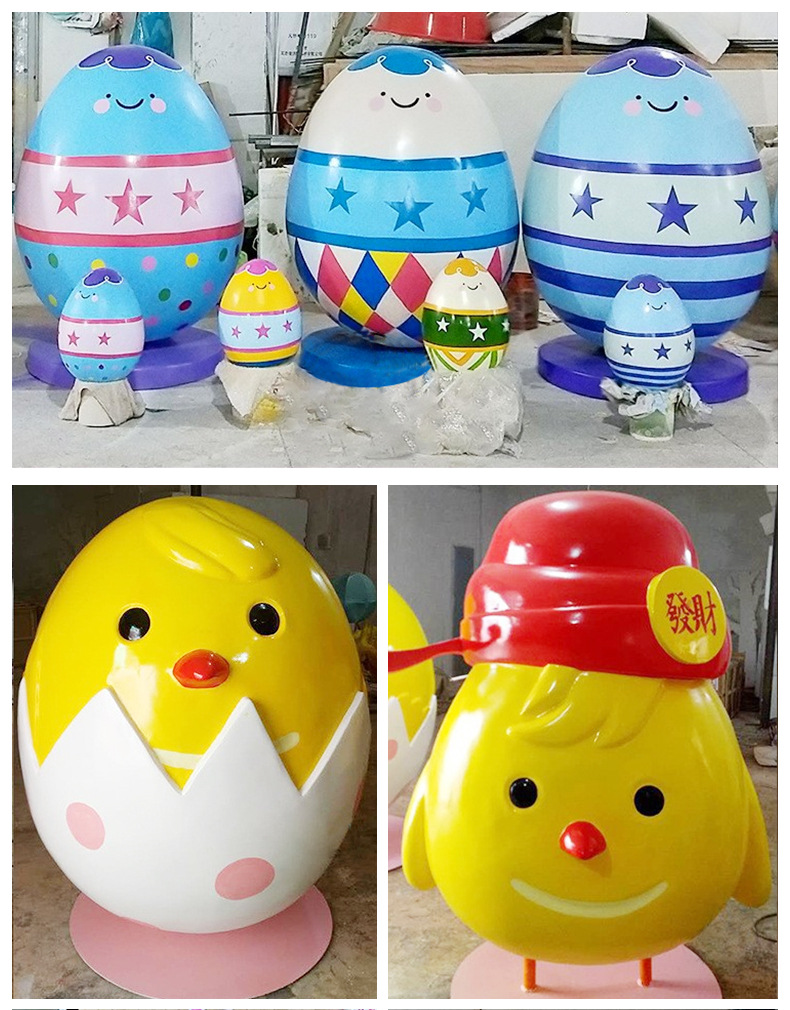 유리섬유 조각 맞춤형 만화 달걀 조각 모형 달걀 껍질 부활절 달걀 유치원 잔디 조각 대형 장식품스토어 가기