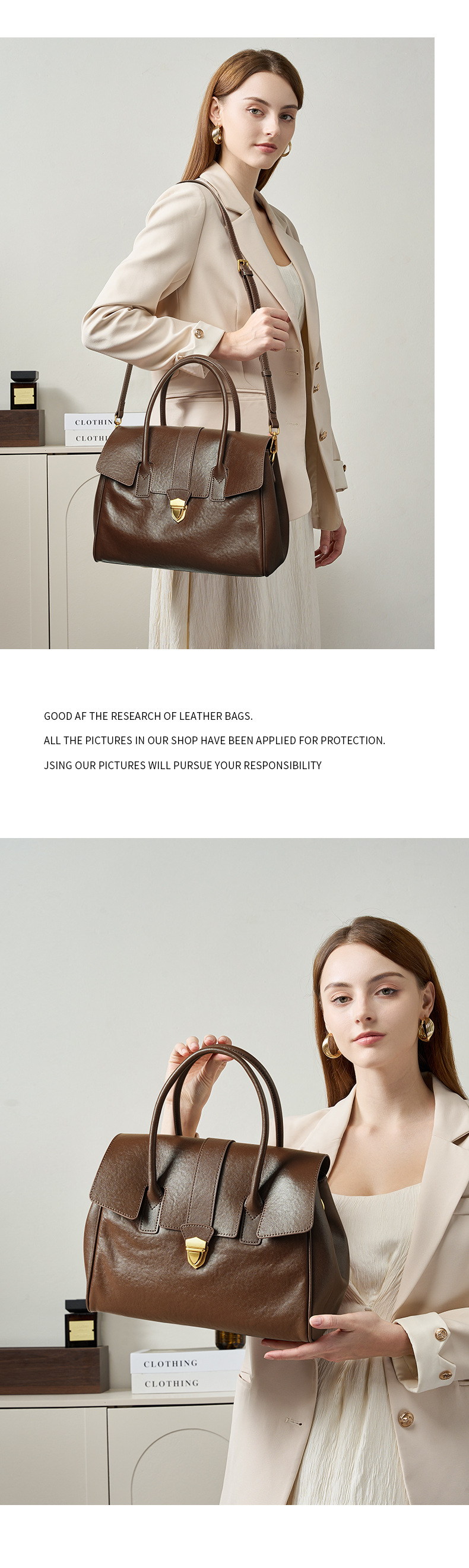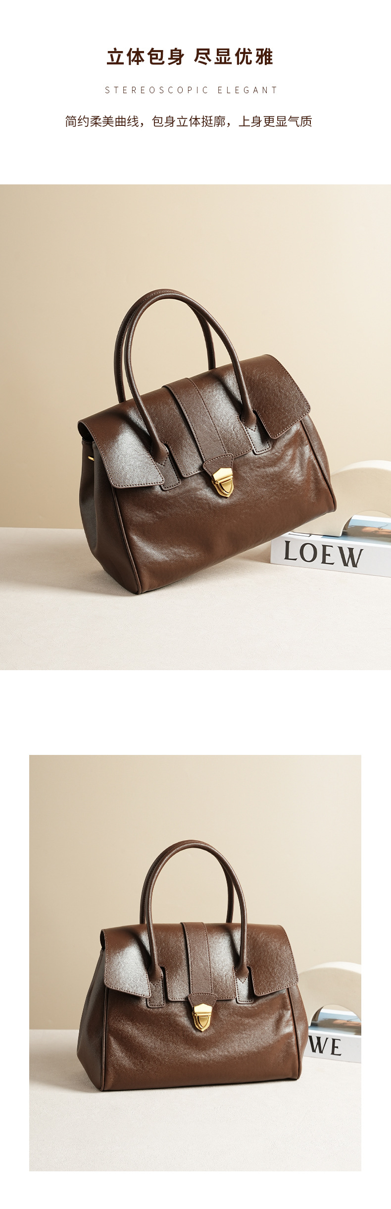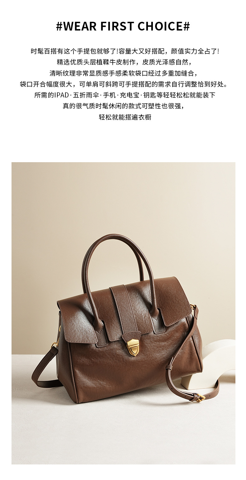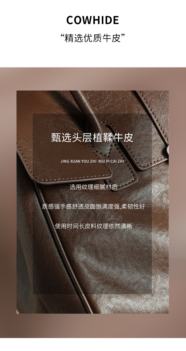 秋冬款头层植鞣牛皮高级感公文包 真皮复古通勤大容量斜挎手提包
