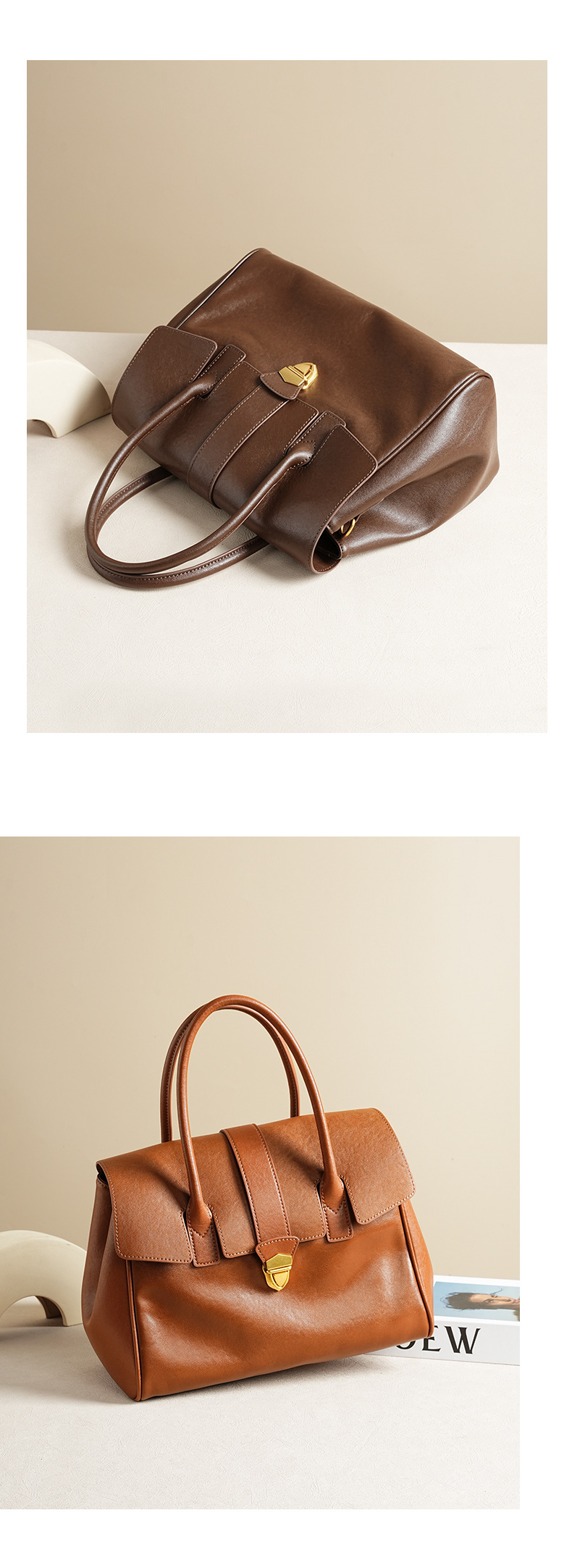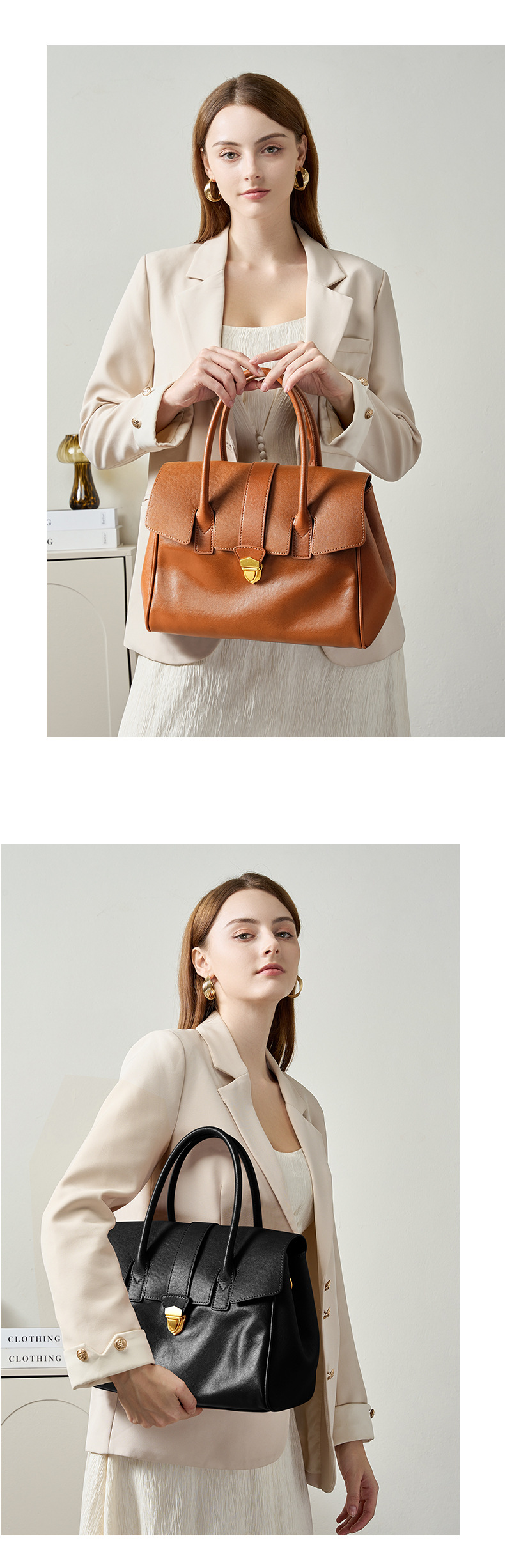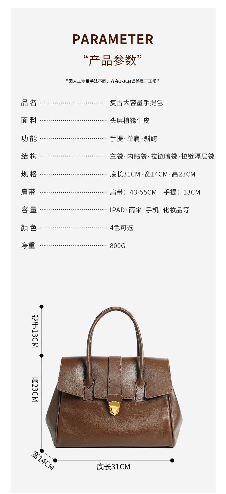秋冬款头层植鞣牛皮高级感公文包 真皮复古通勤大容量斜挎手提包