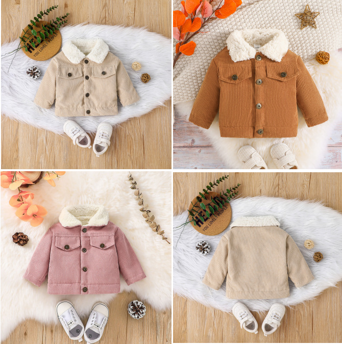 겨울 의류 재고 직접 2024 아기 겨울 조수 팬 기모 두꺼운 단색 코듀로이 코트스토어 가기