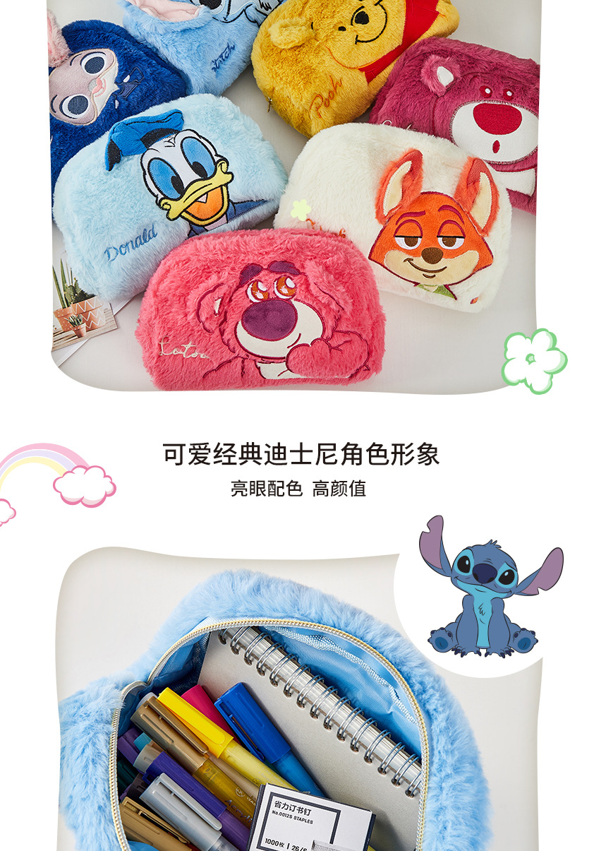 디즈니 가을 겨울 귀여운 플러시 화장품 가방 대용량 휴대용 학생 필통 수납 가방
