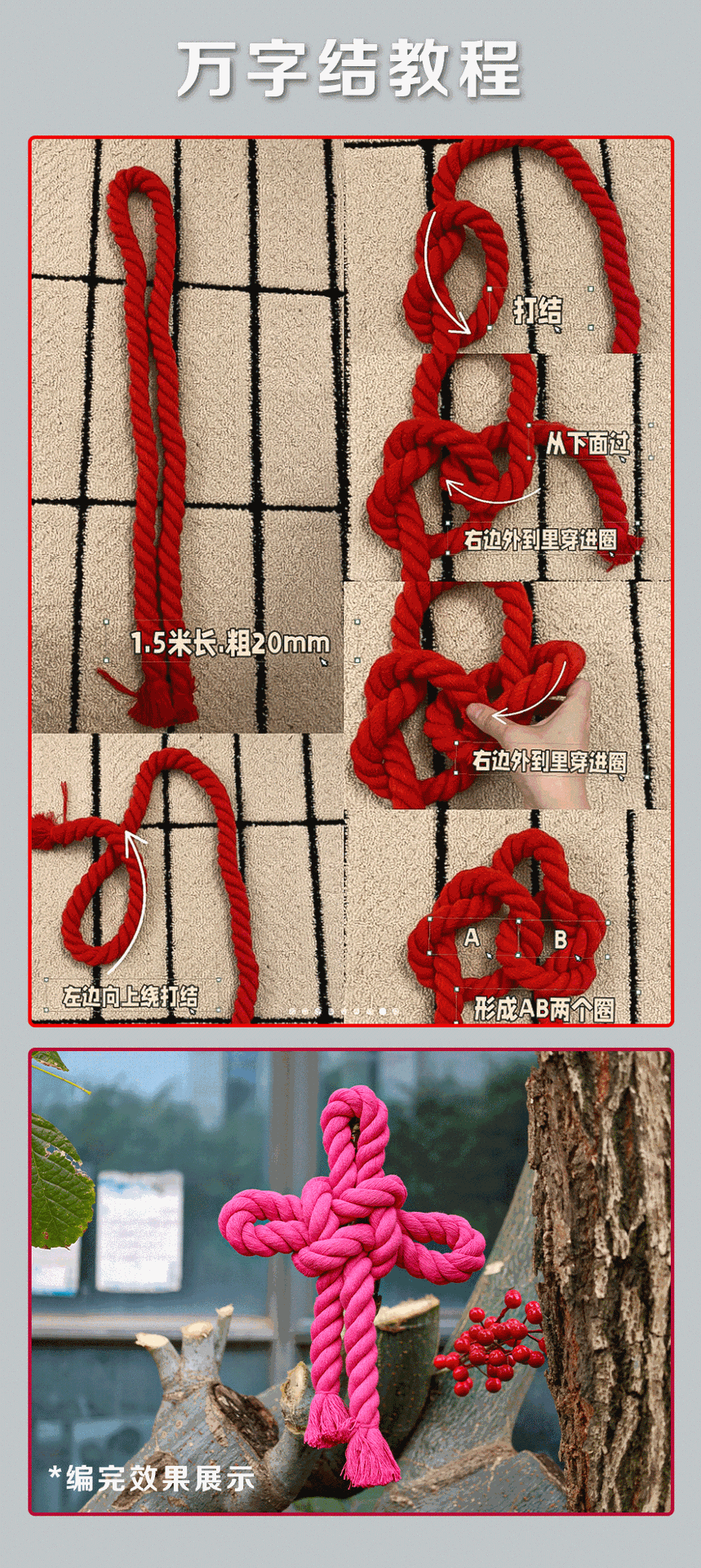 20mm 로즈 레드 코튼 로프 2cm 두꺼운 코튼 로프 만자 매듭 로프 대형 땋은 두꺼운 빨간색 로프 중국 매듭 로프