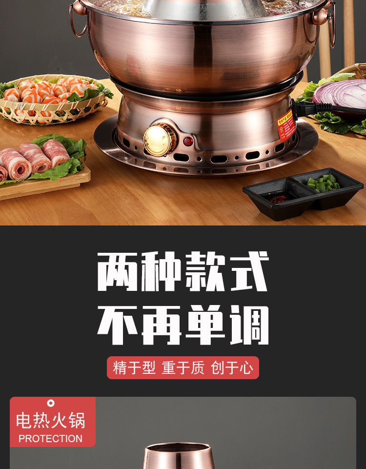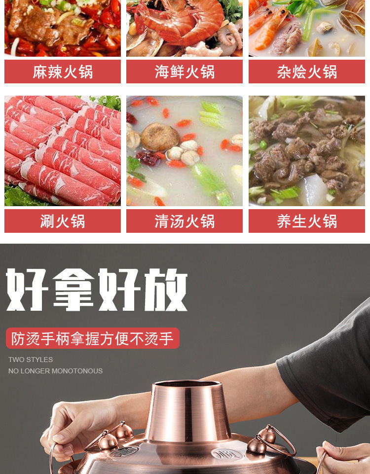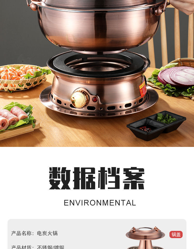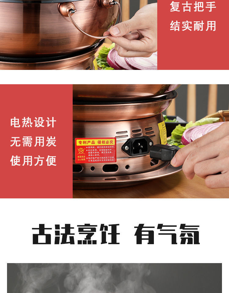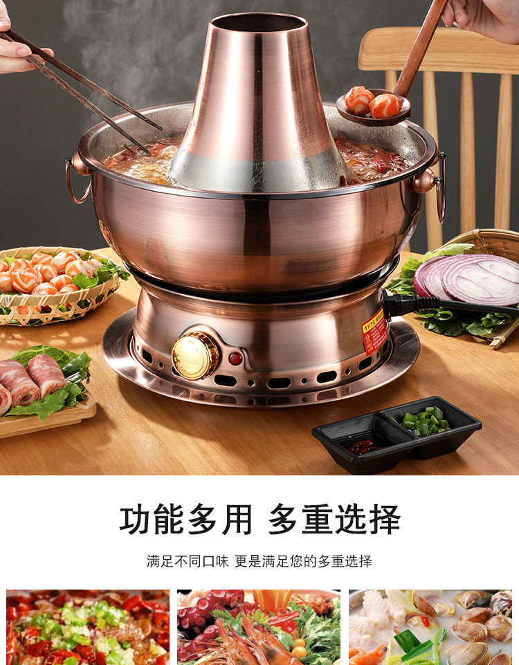 뜨거운 삶은 양고기 및 야크 뜨거운 냄비 두꺼운 모방 구리 오래 된 베이징 화재 보일러 숯 구리 구식 이중 목적 플러그인 상업
