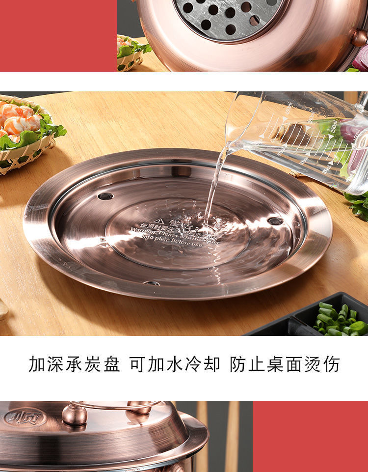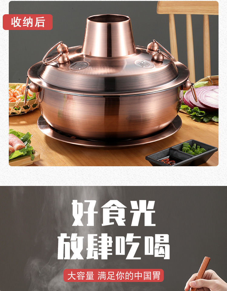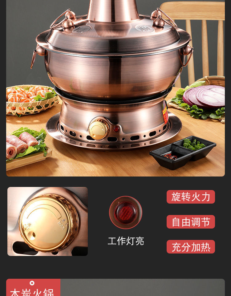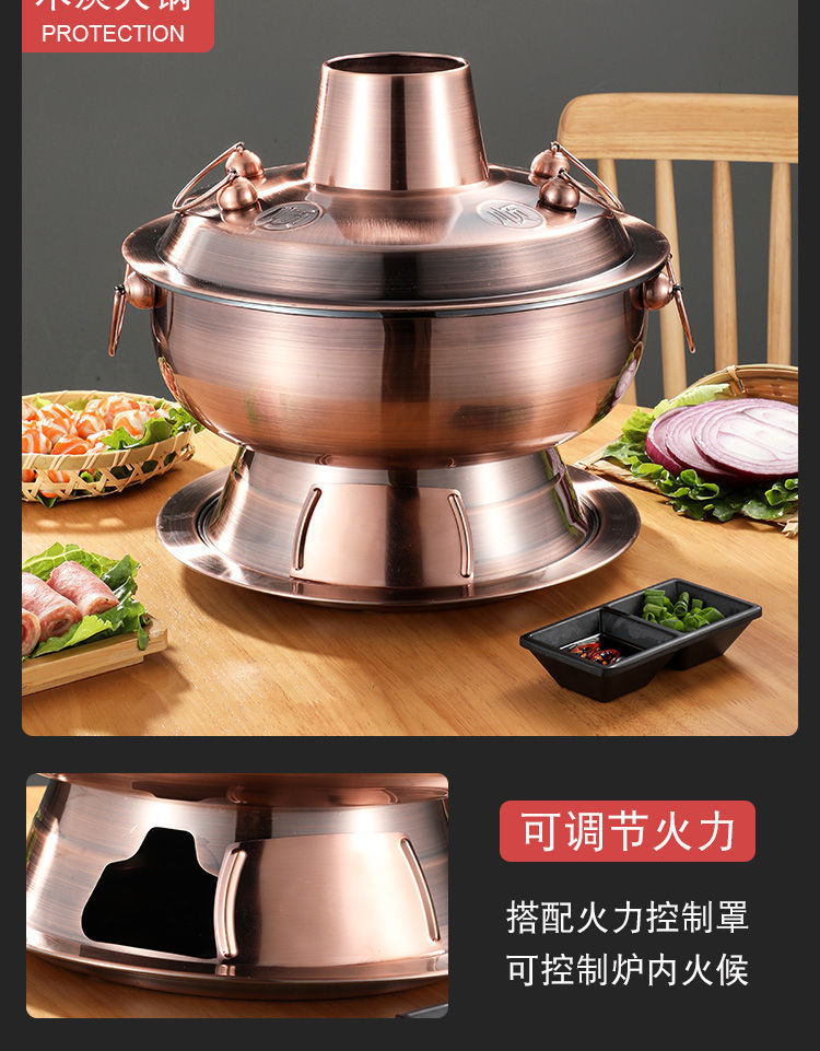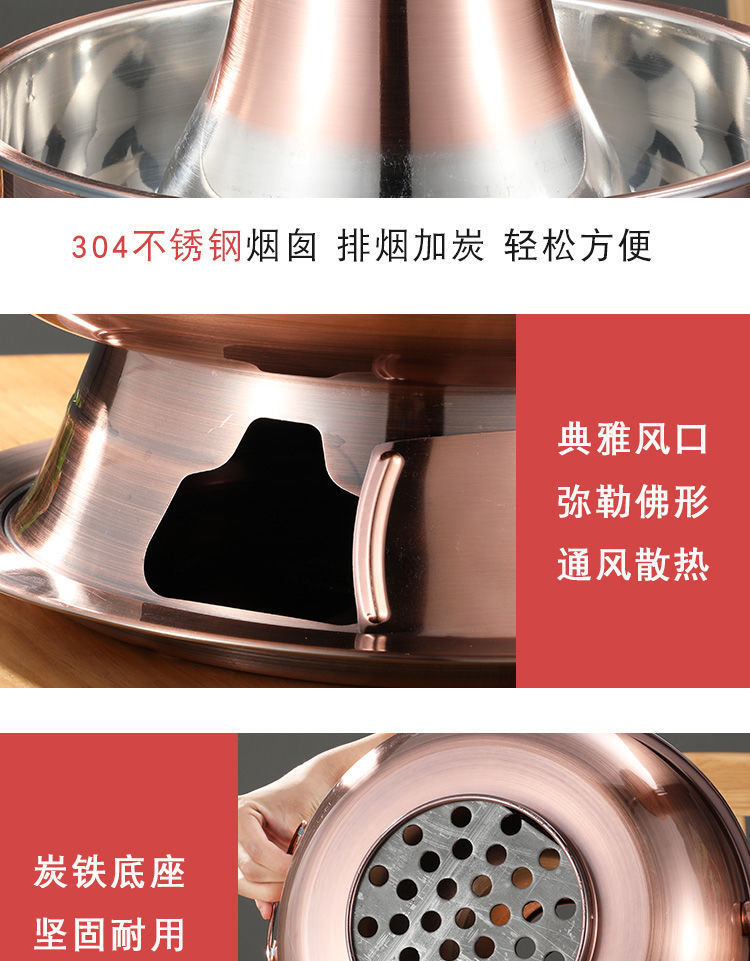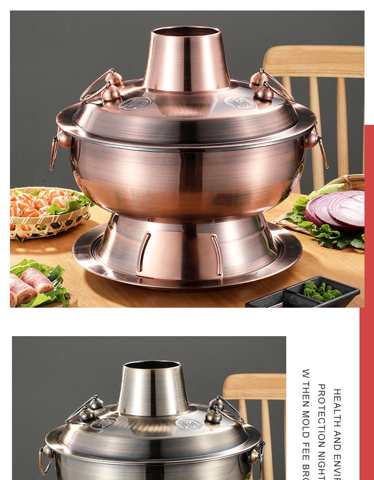 뜨거운 삶은 양고기 및 야크 뜨거운 냄비 두꺼운 모방 구리 오래 된 베이징 화재 보일러 숯 구리 구식 이중 목적 플러그인 상업스토어 가기