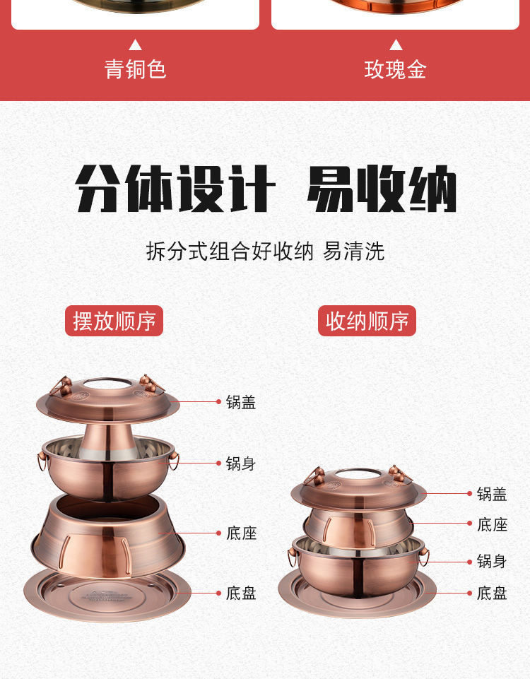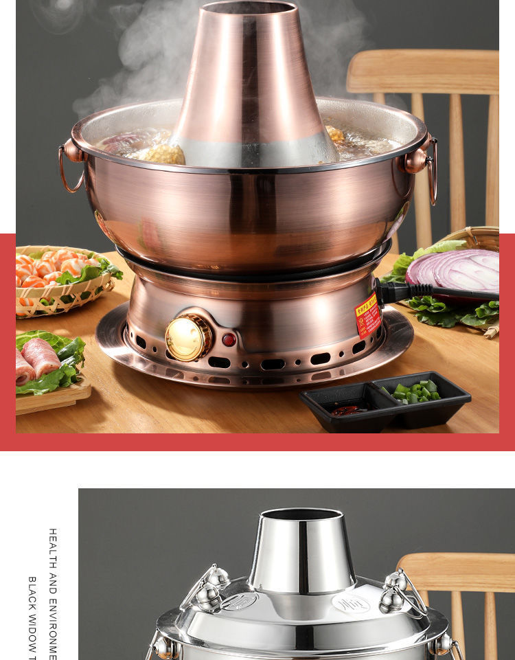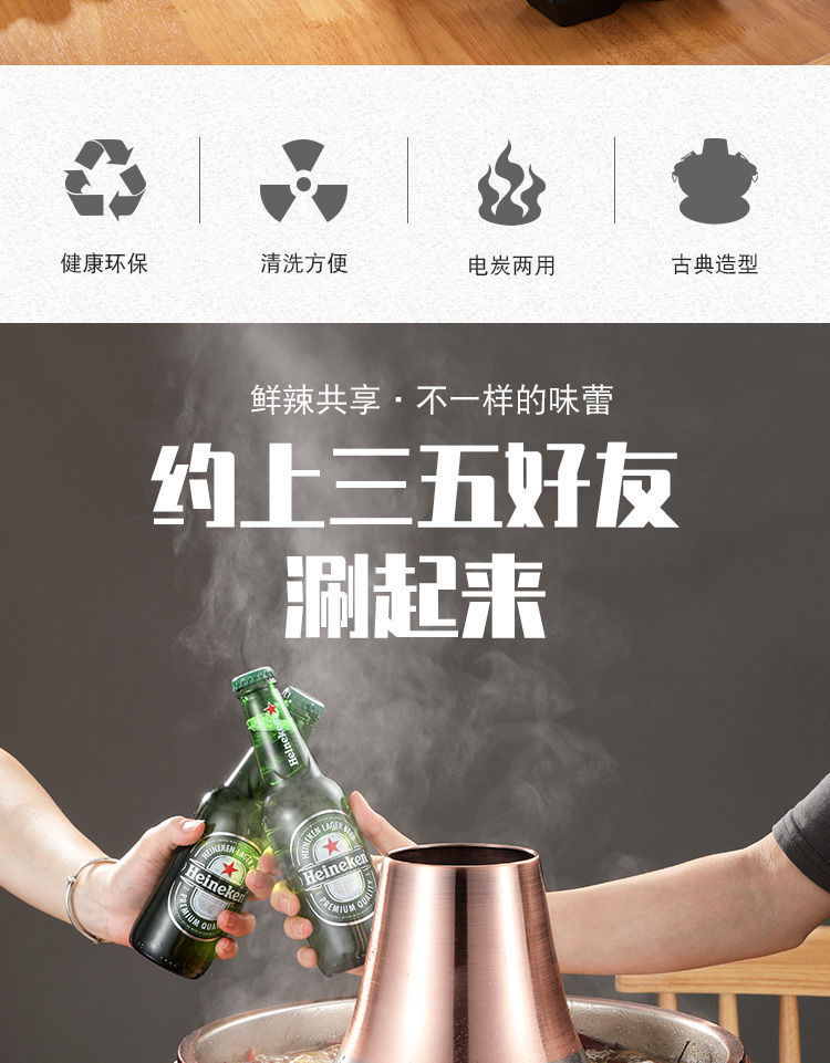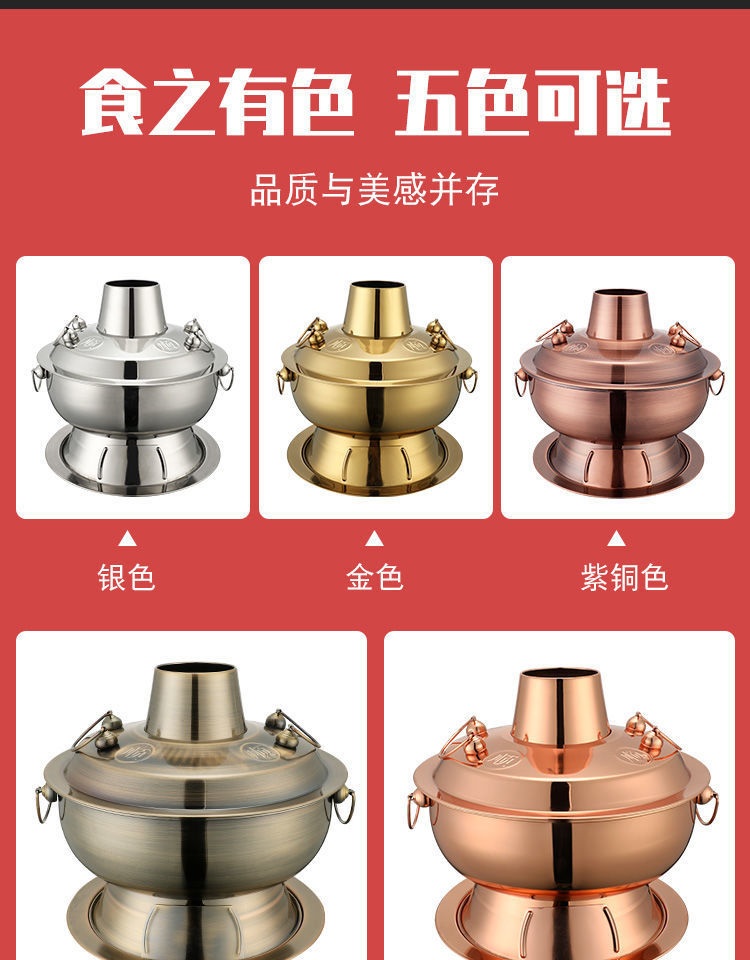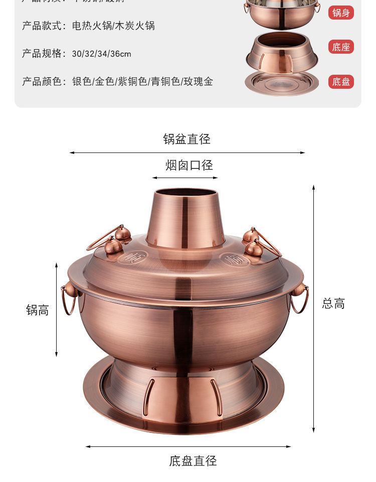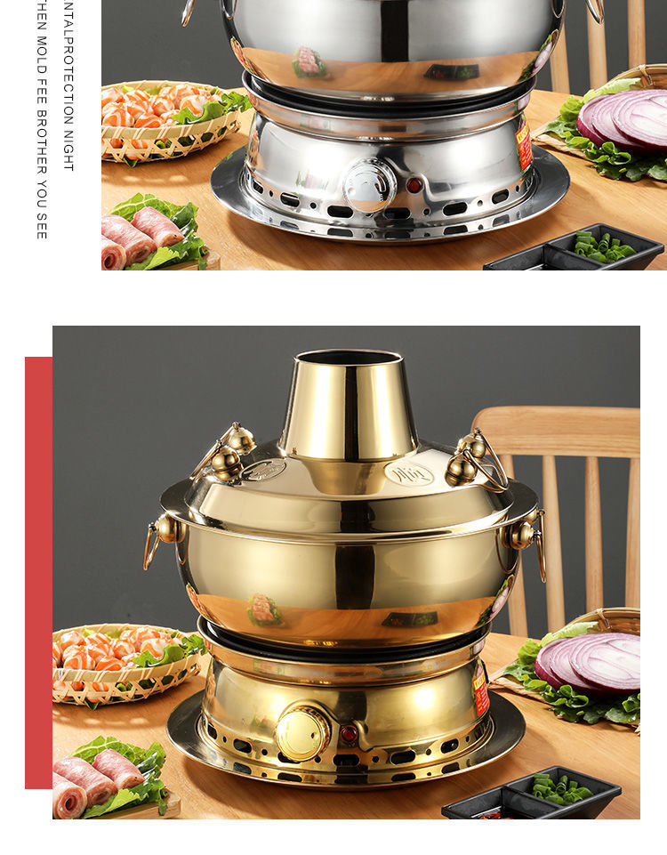 뜨거운 삶은 양고기 및 야크 뜨거운 냄비 두꺼운 모방 구리 오래 된 베이징 화재 보일러 숯 구리 구식 이중 목적 플러그인 상업스토어 가기