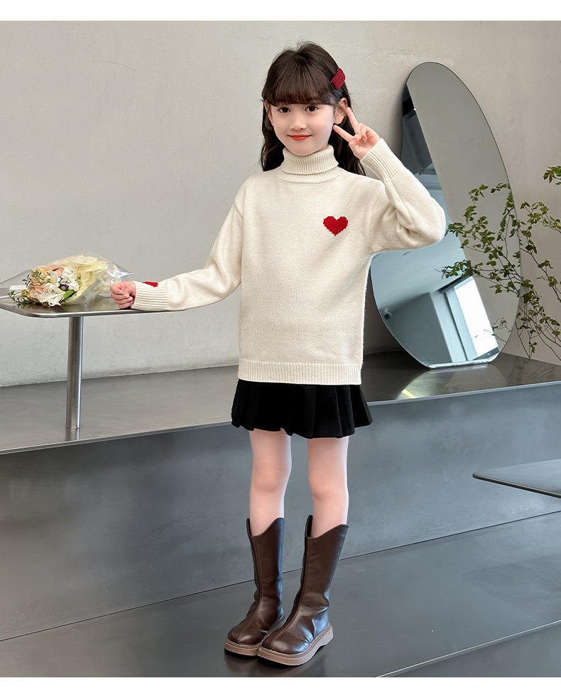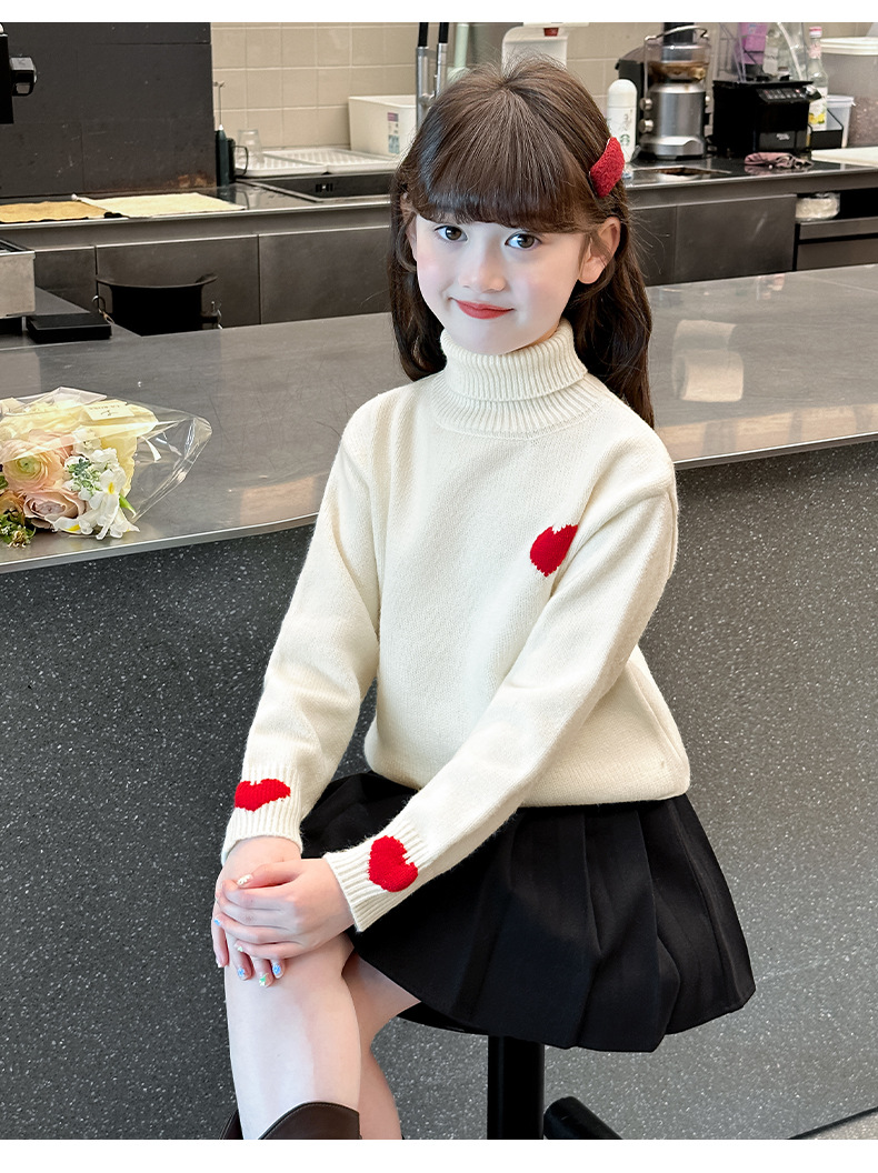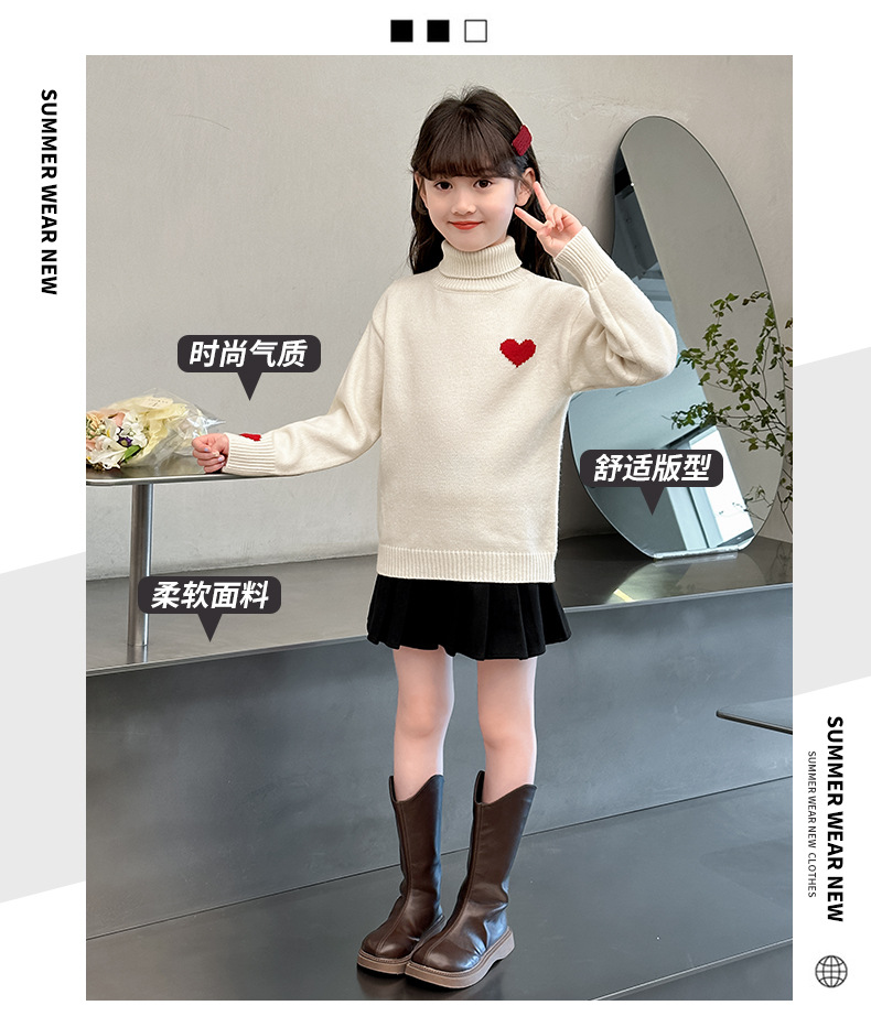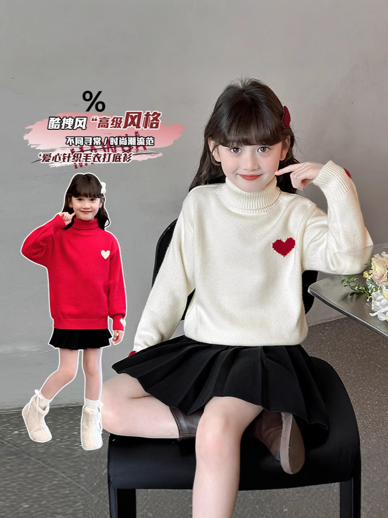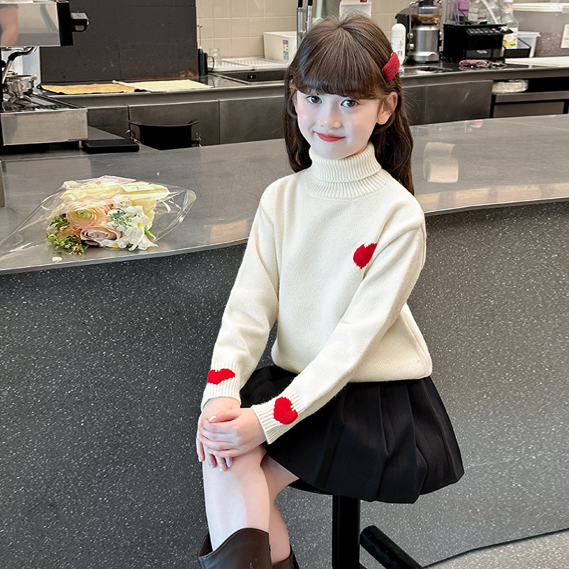 소녀의 사랑 스웨터 기모 겨울 2024 어린이 두꺼운 터틀넥 스웨터 소녀의 니트 스웨터 겨울 아동복스토어 가기