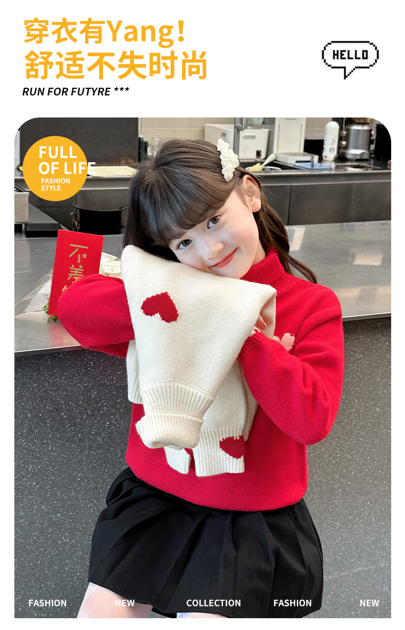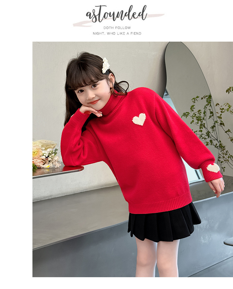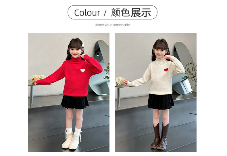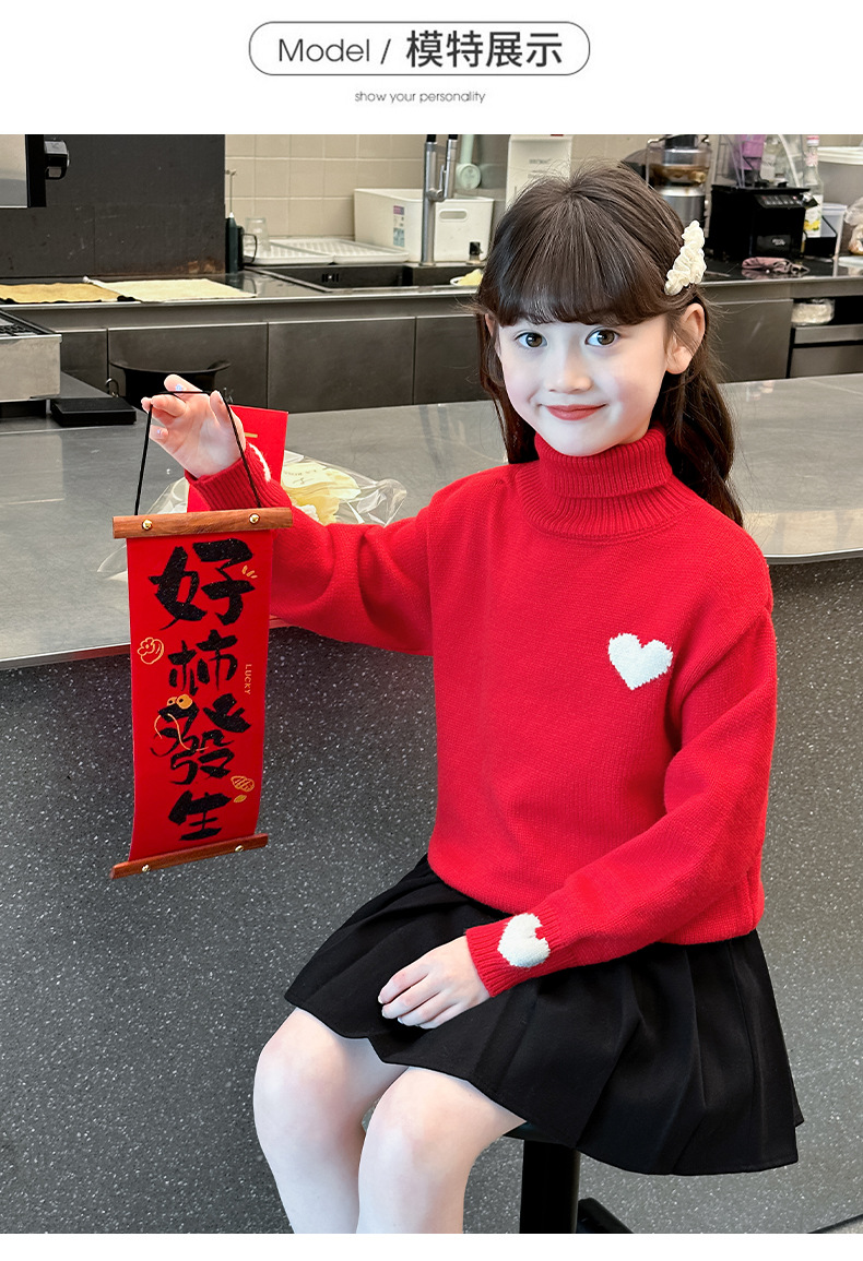소녀의 사랑 스웨터 기모 겨울 2024 어린이 두꺼운 터틀넥 스웨터 소녀의 니트 스웨터 겨울 아동복스토어 가기