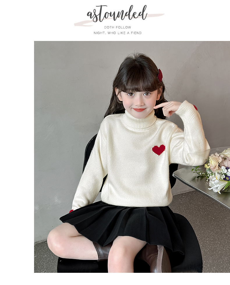 소녀의 사랑 스웨터 기모 겨울 2024 어린이 두꺼운 터틀넥 스웨터 소녀의 니트 스웨터 겨울 아동복
