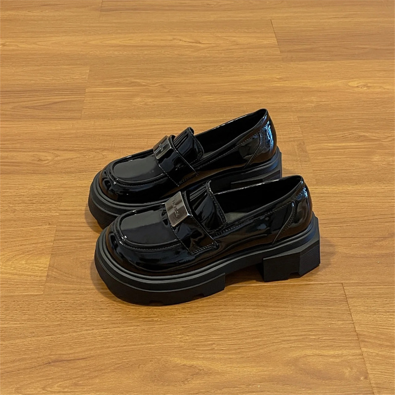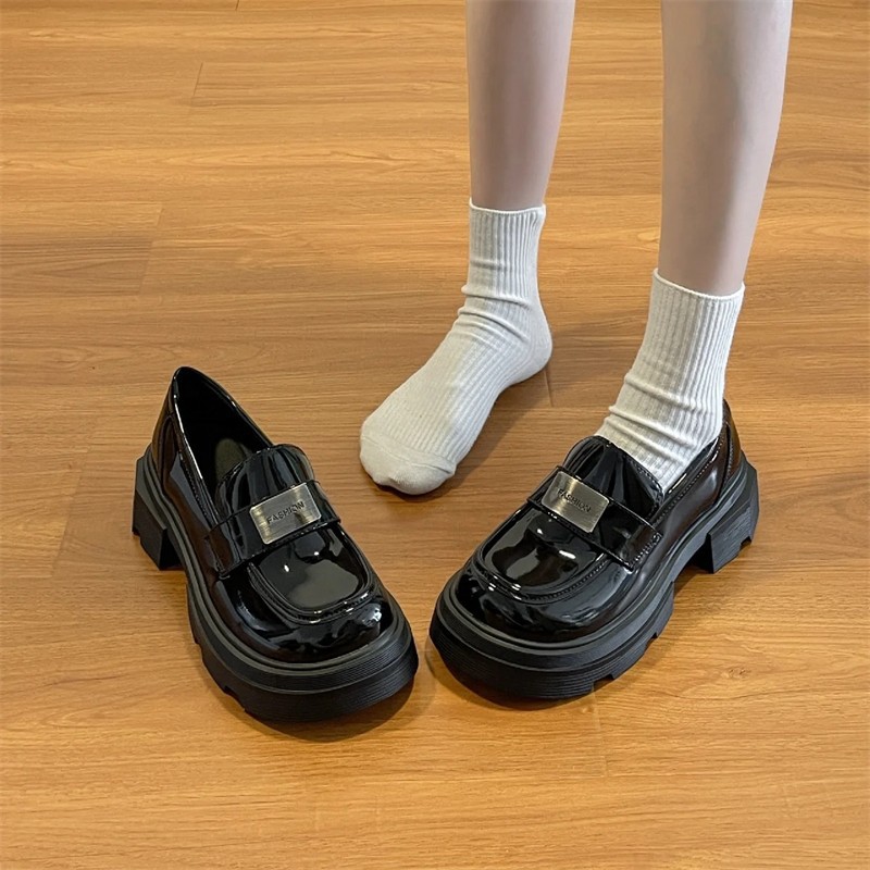 매트 질감 두꺼운 바닥 로퍼 낮은 입 모든 경기 학생 싱글 레이어 신발 여성의 2024 새로운 스타일 슬립 온 유행 가죽 신발