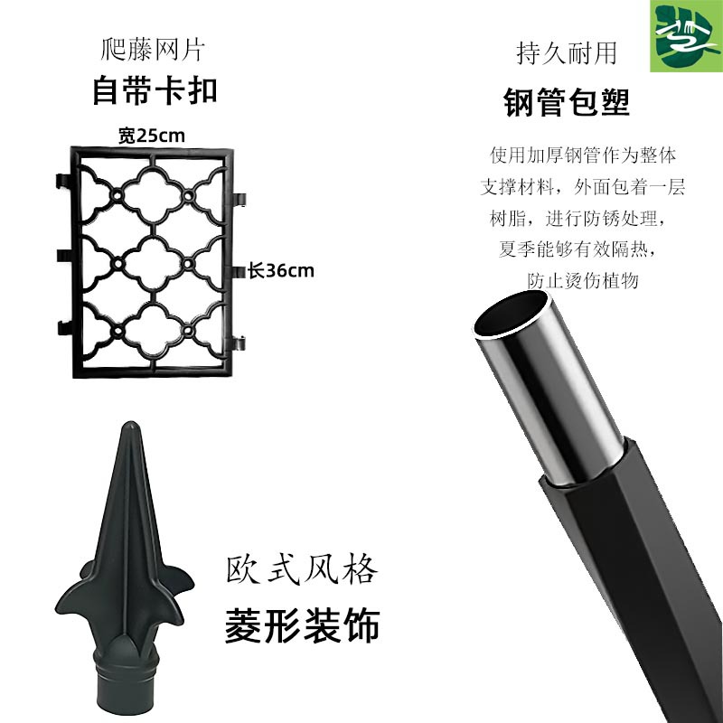 정원 격자 야외 및 실내 암벽 등반 식물 튼튼한 녹슬지 않는 플라스틱 코팅 강철 파이프 지원 울타리 등반 프레임