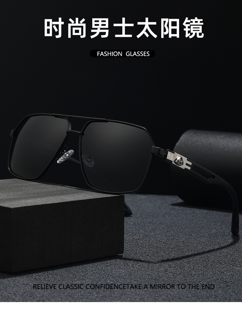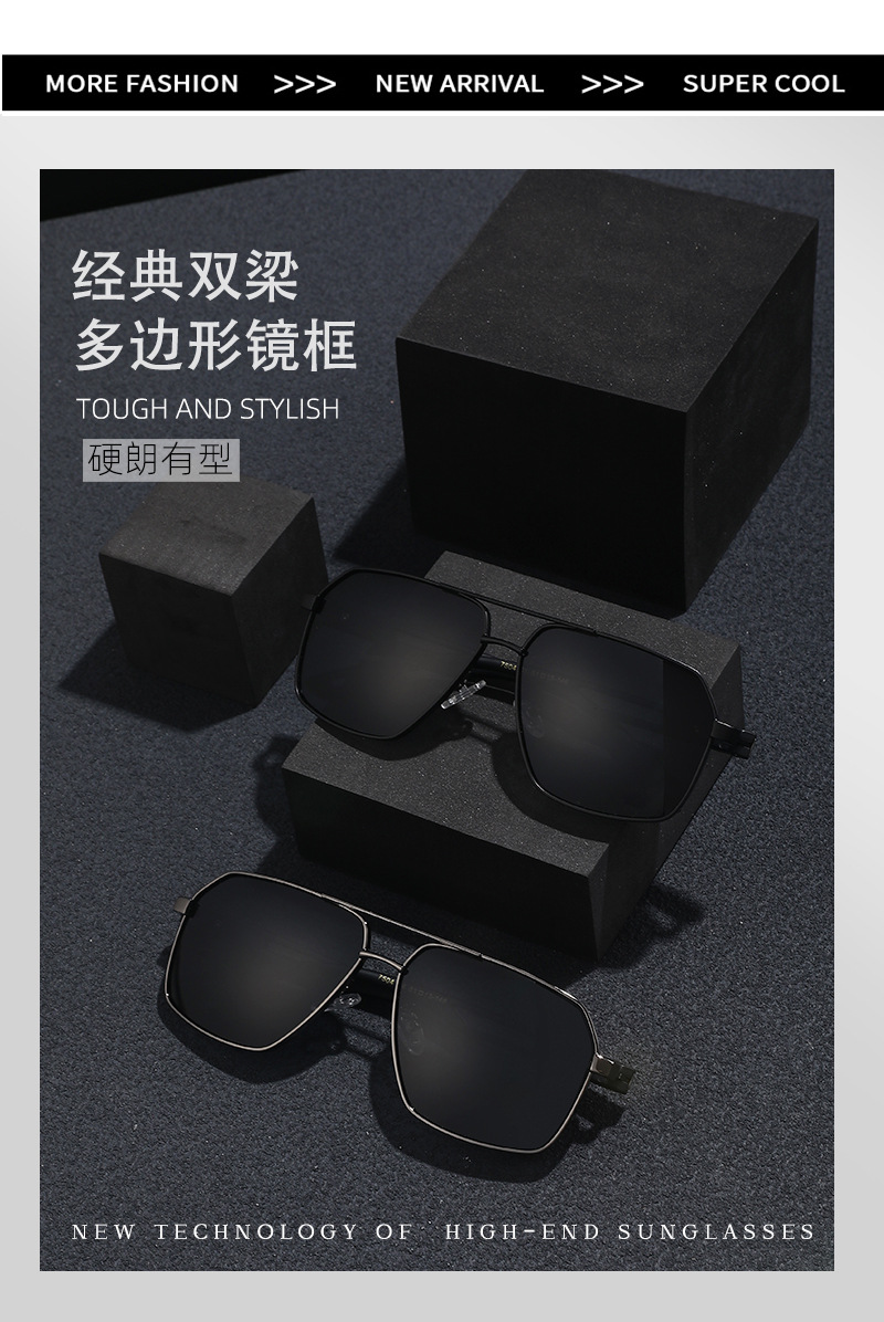 2024 새로운 스타일의 금속 편광 선글라스 남성 높은 감각 운전 UV 보호 선글라스 스퀘어 더블스토어 가기