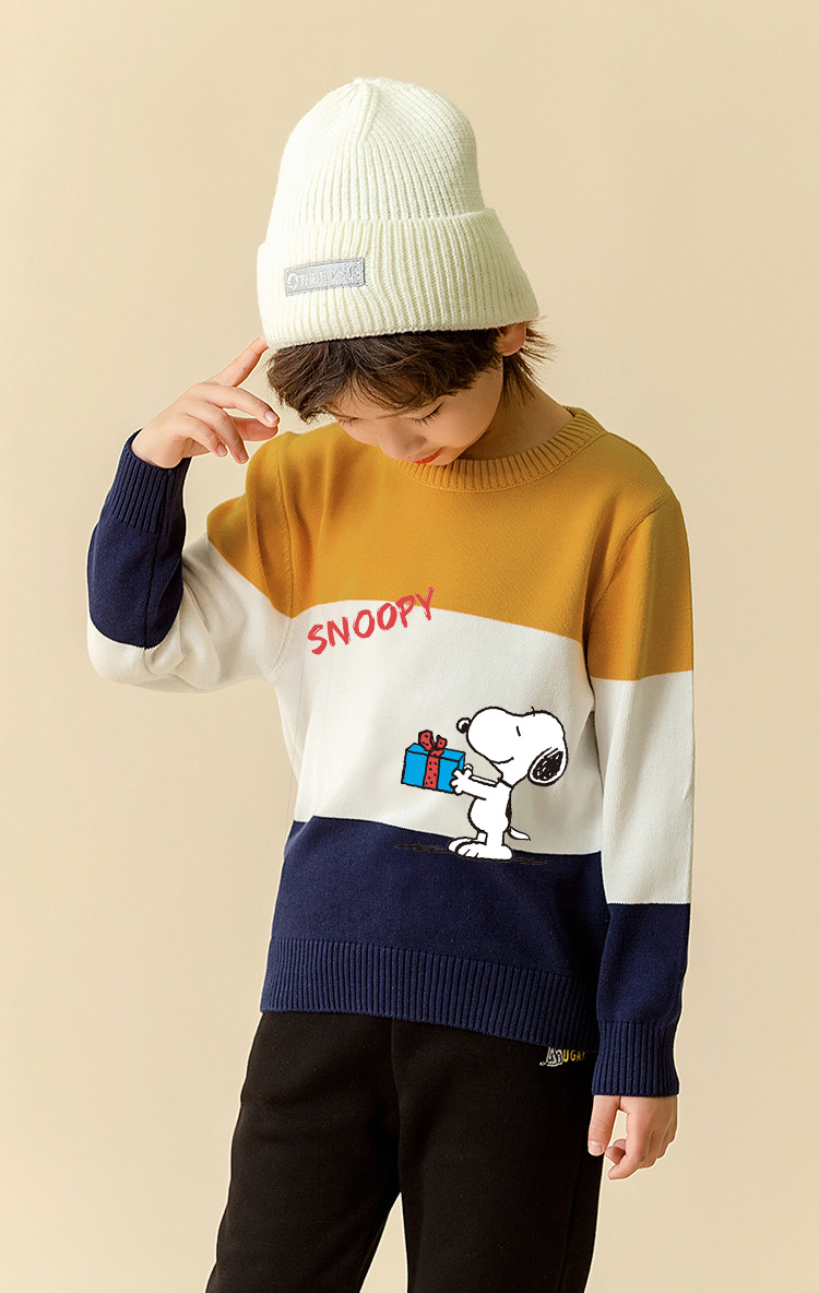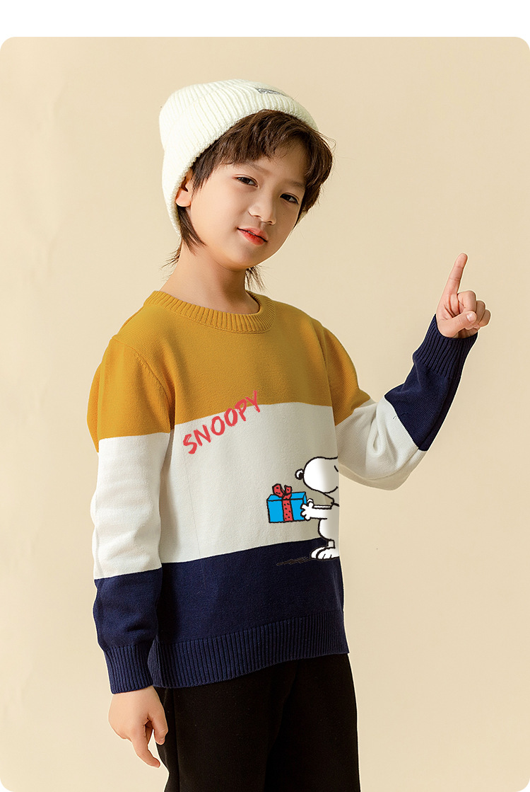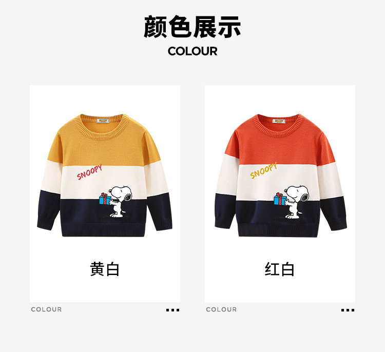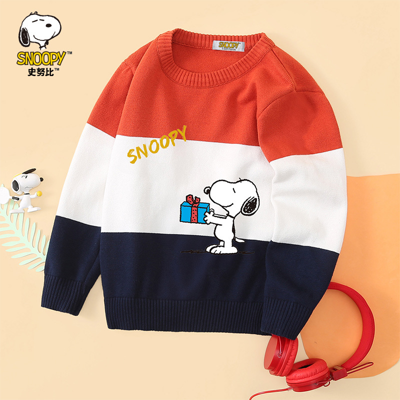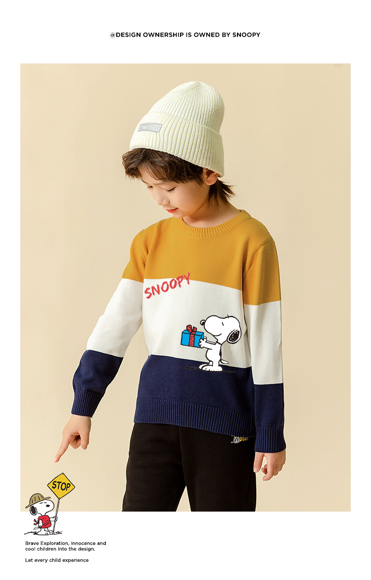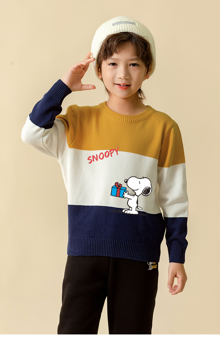 스누피 가을과 겨울 새로운 아동복 어린이 스웨터 소년 컬러 대비 스웨터 라운드 넥 따뜻한 옷 니트 의류 패션스토어 가기