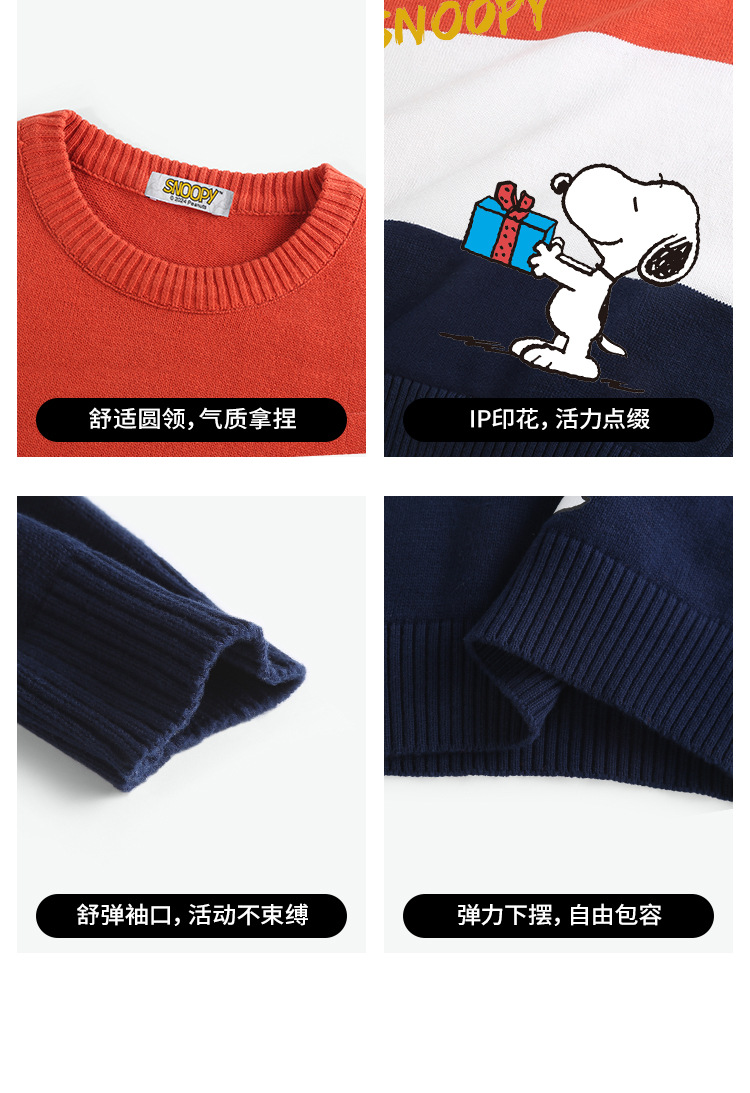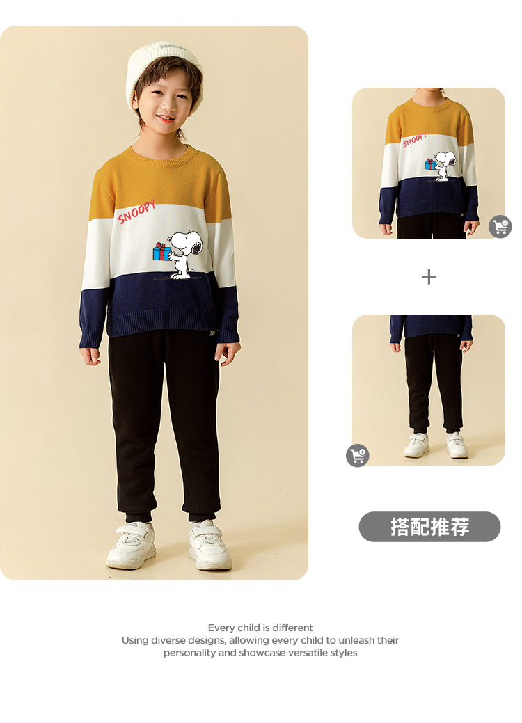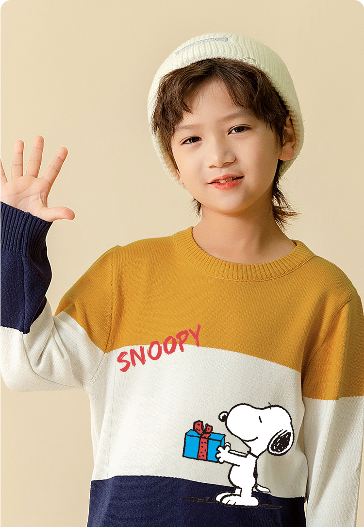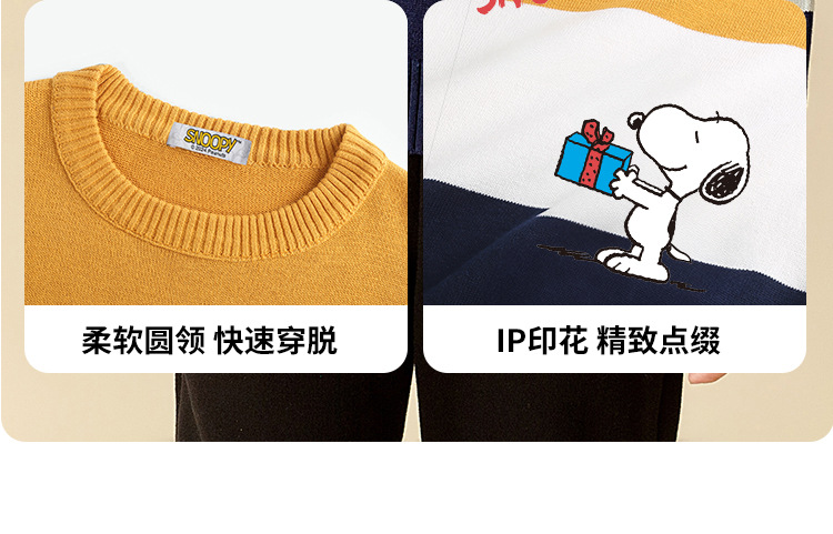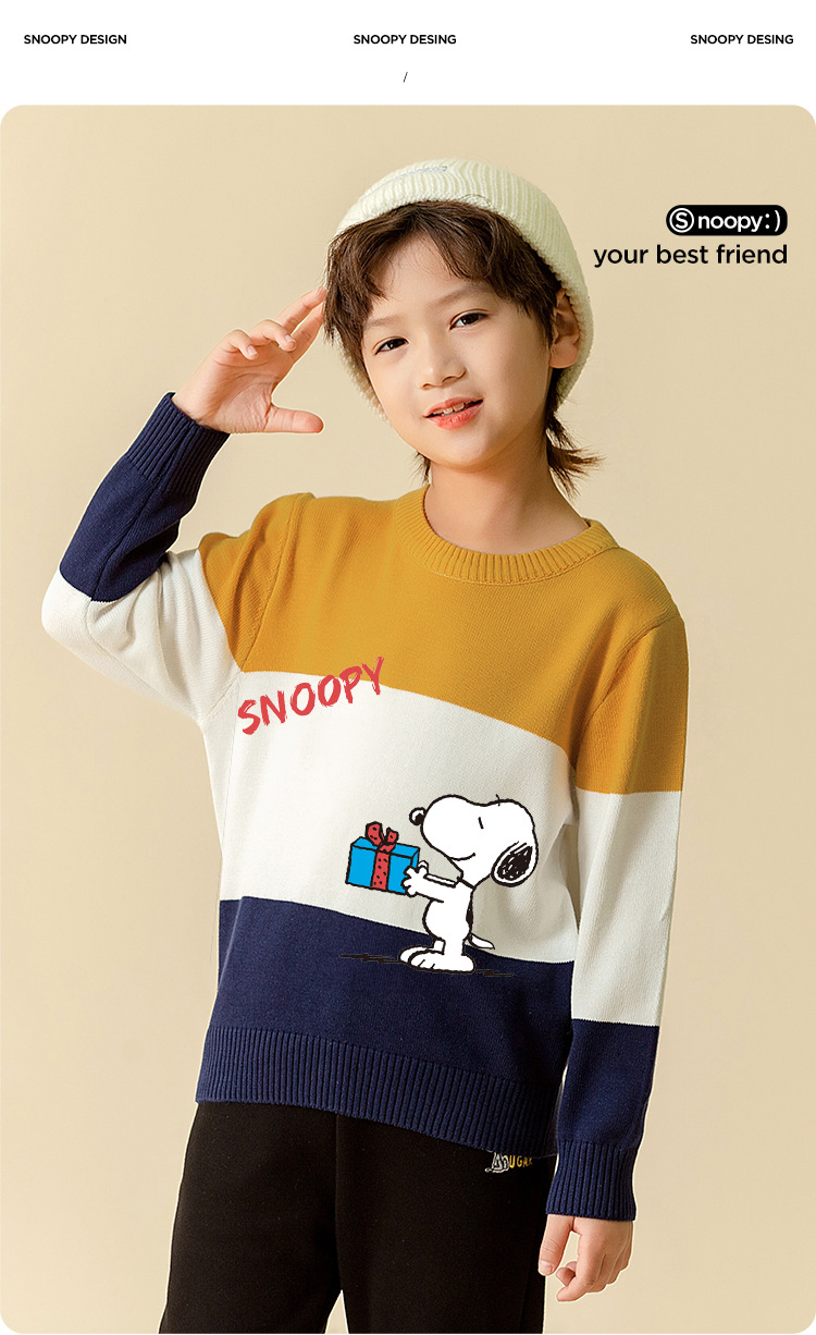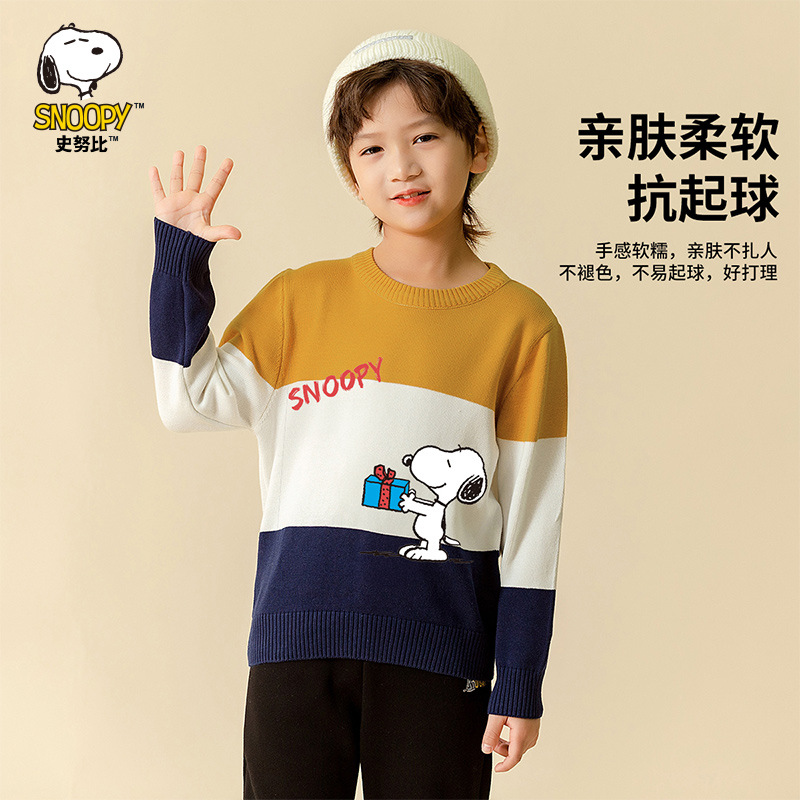 스누피 가을과 겨울 새로운 아동복 어린이 스웨터 소년 컬러 대비 스웨터 라운드 넥 따뜻한 옷 니트 의류 패션스토어 가기