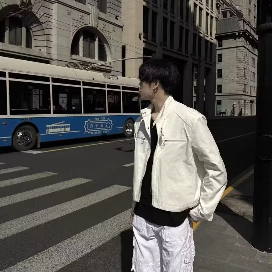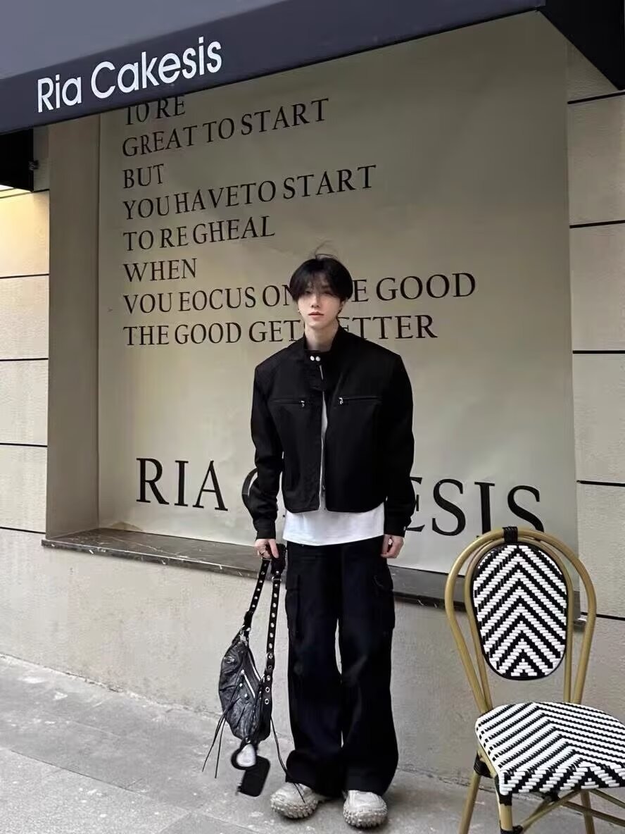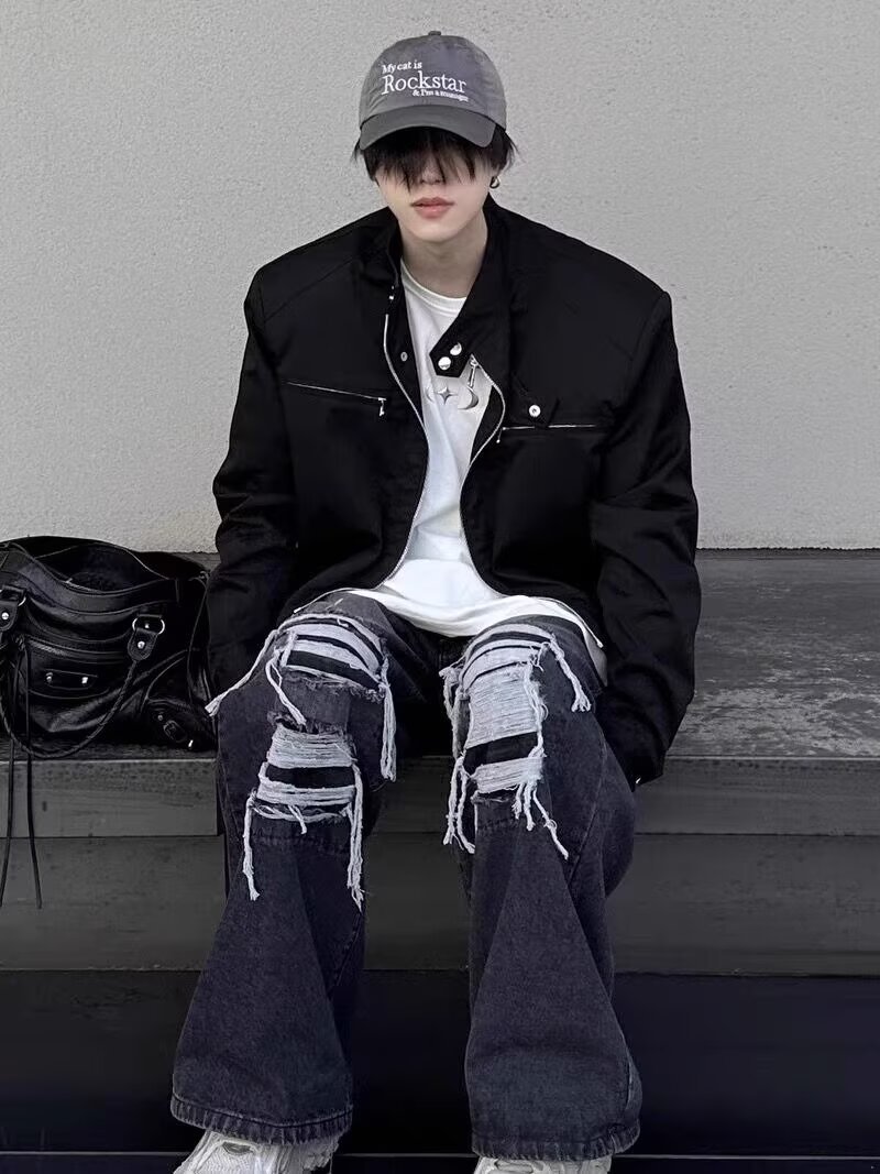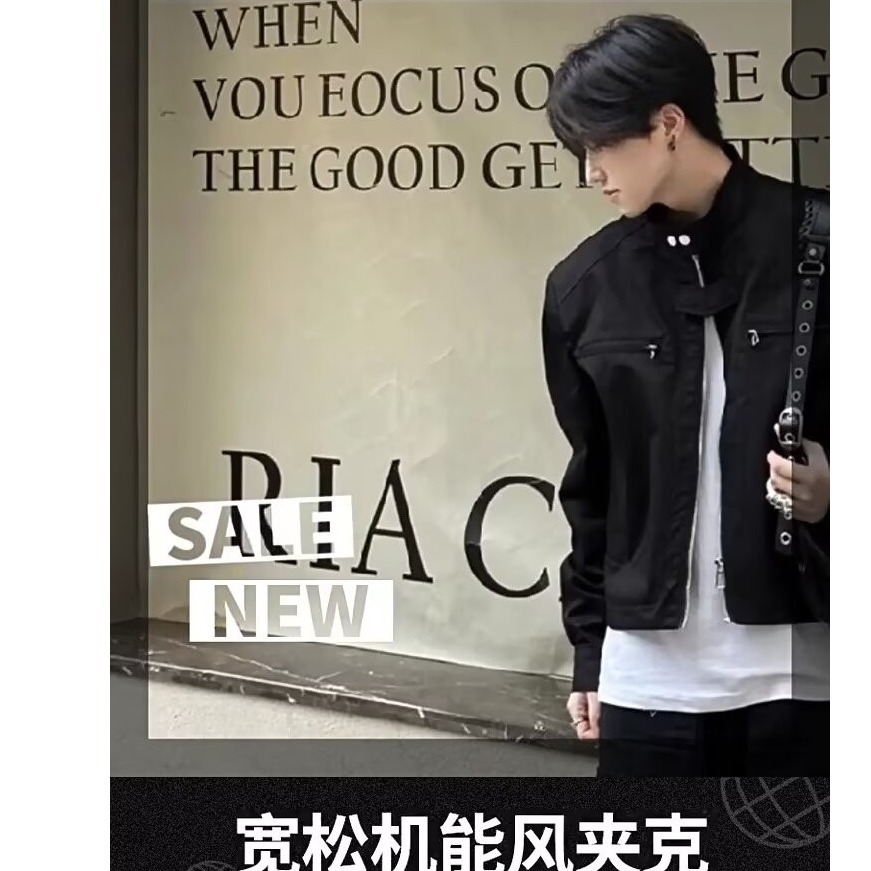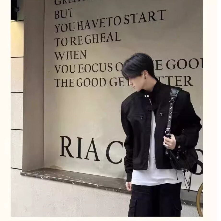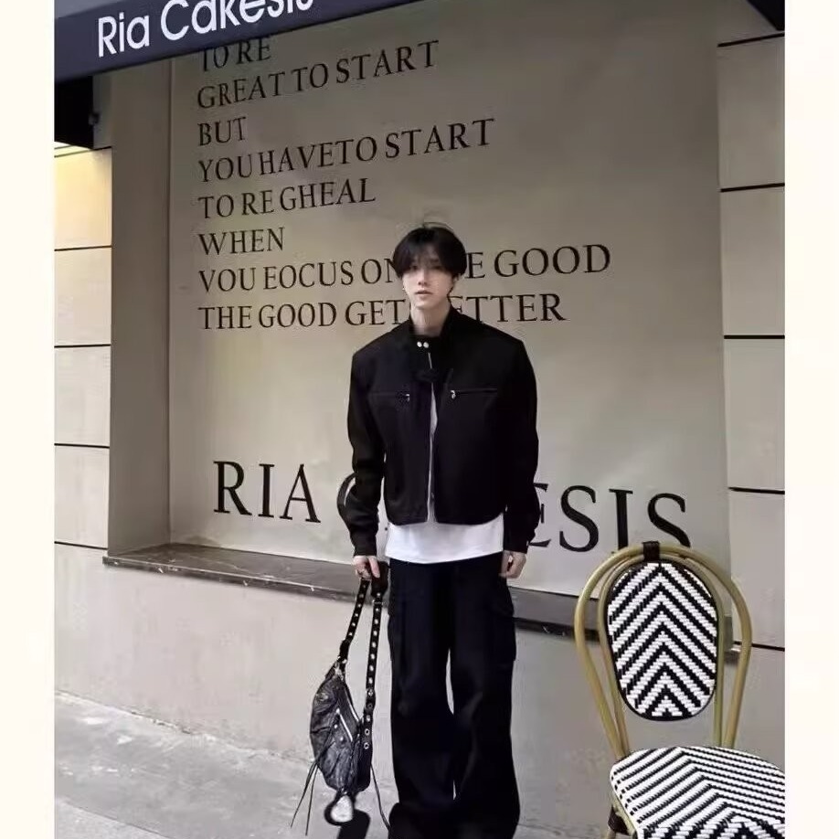 고급 어깨 패드 짧은 기능성 재킷 남성용 한국식 긴 소매 목 소매 정사이즈 표준 단색 청소년스토어 가기