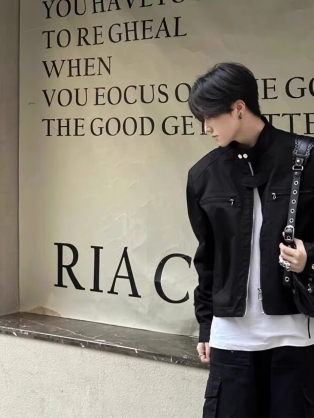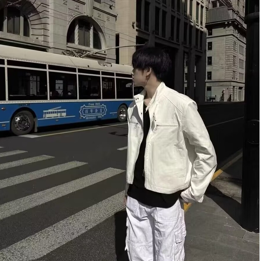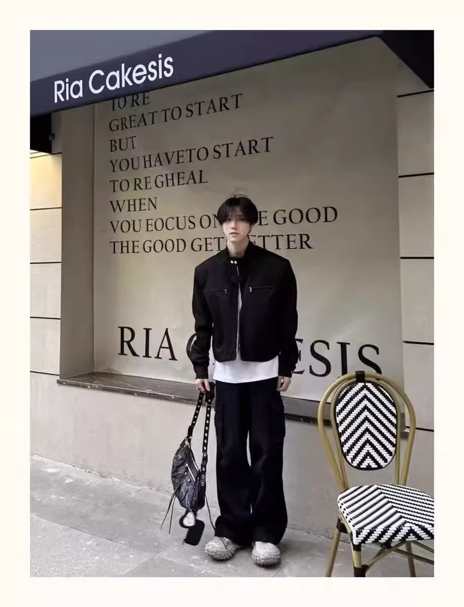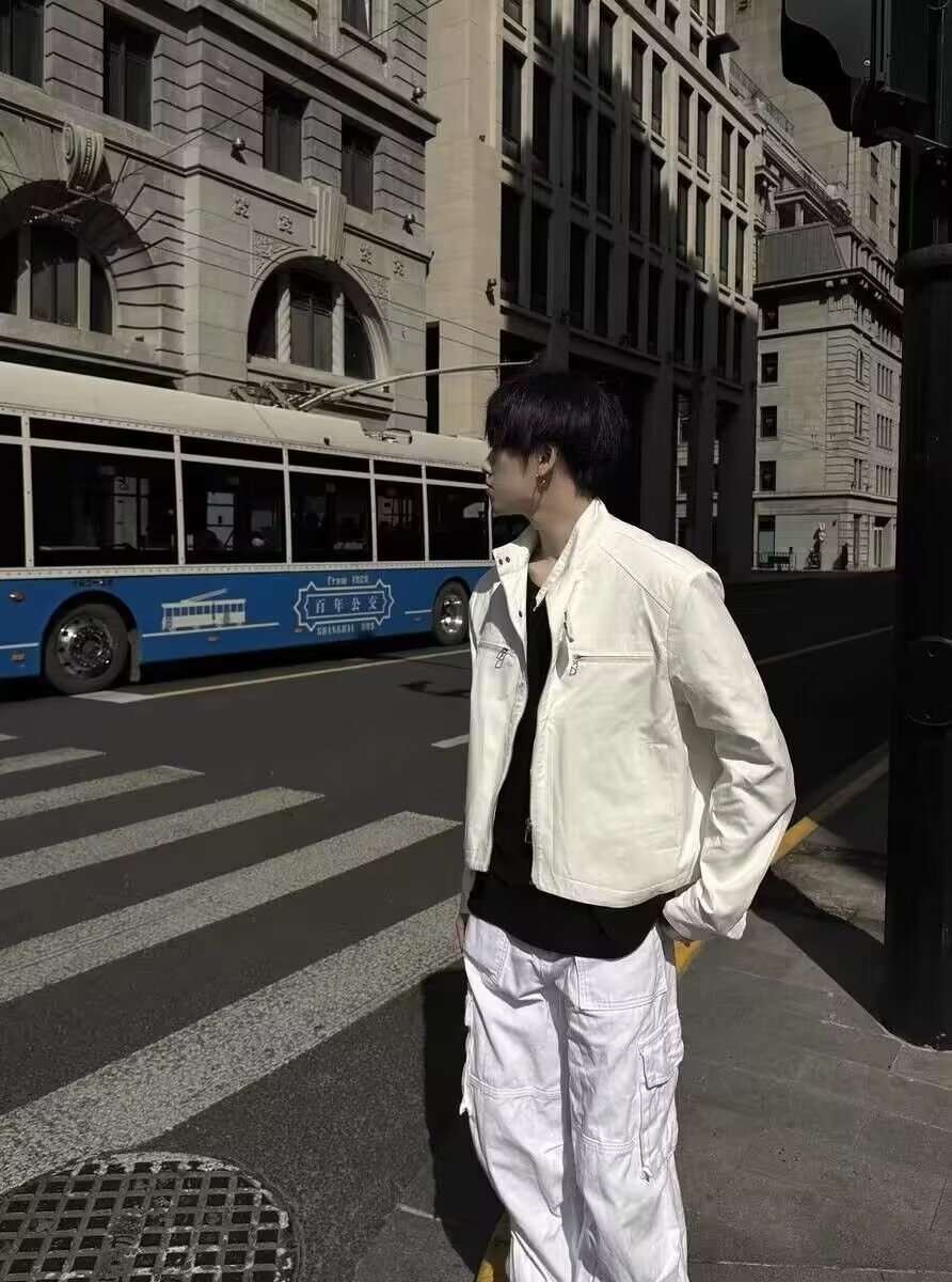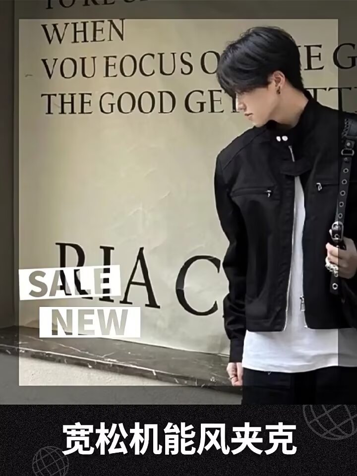 고급 어깨 패드 짧은 기능성 재킷 남성용 한국식 긴 소매 목 소매 정사이즈 표준 단색 청소년스토어 가기
