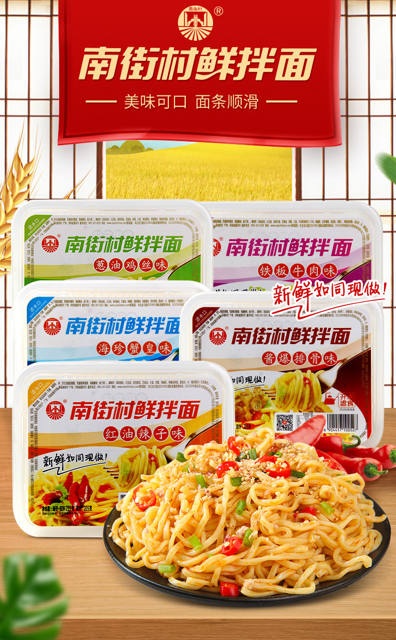 Nanjie Village Fresh Noodles 255g 상자 찐 쇠고기 소스, Spareribs, Scallion Oil, 치킨 파쇄 인스턴트 국수스토어 가기