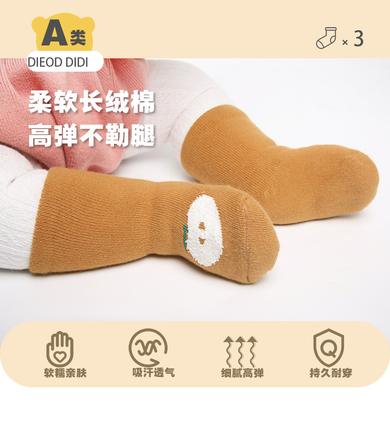 아기 롱삭스 가을 겨울용 두꺼운 테리 양말 신생아 만화 보온 중목 양말 A급 양말