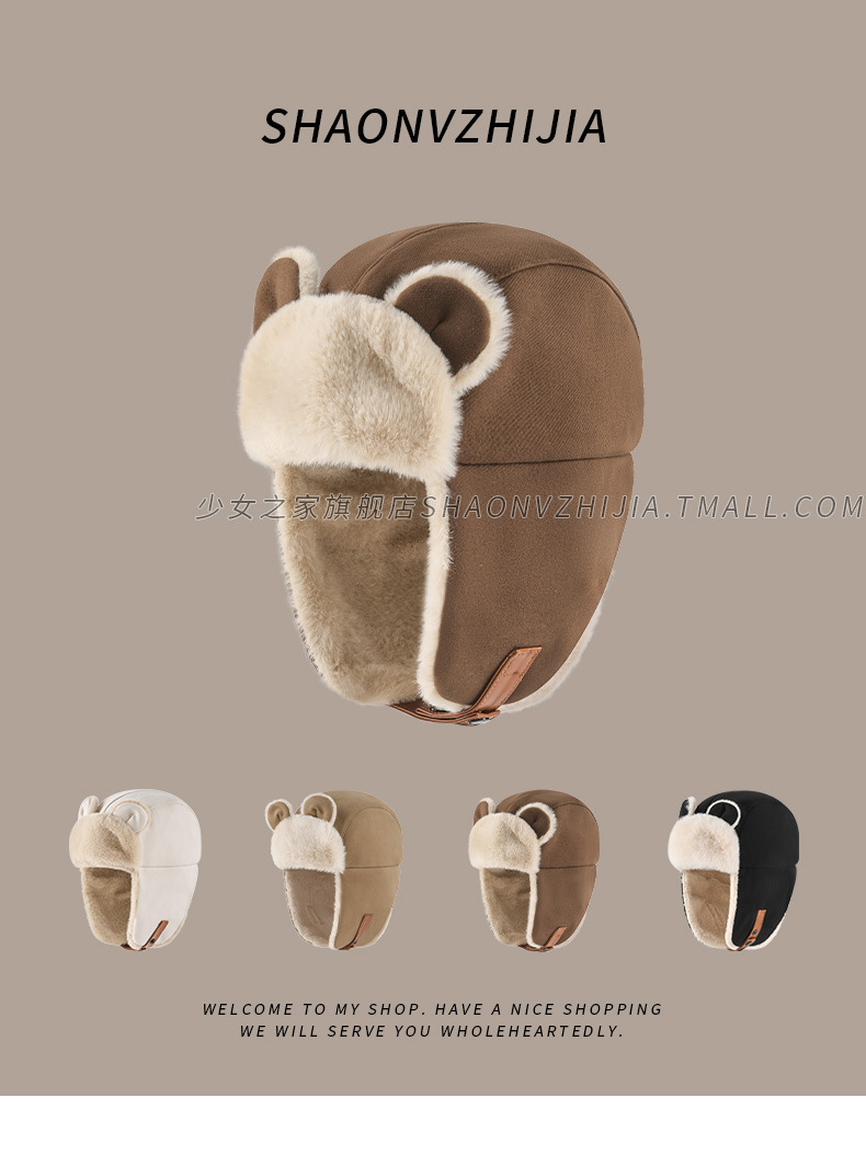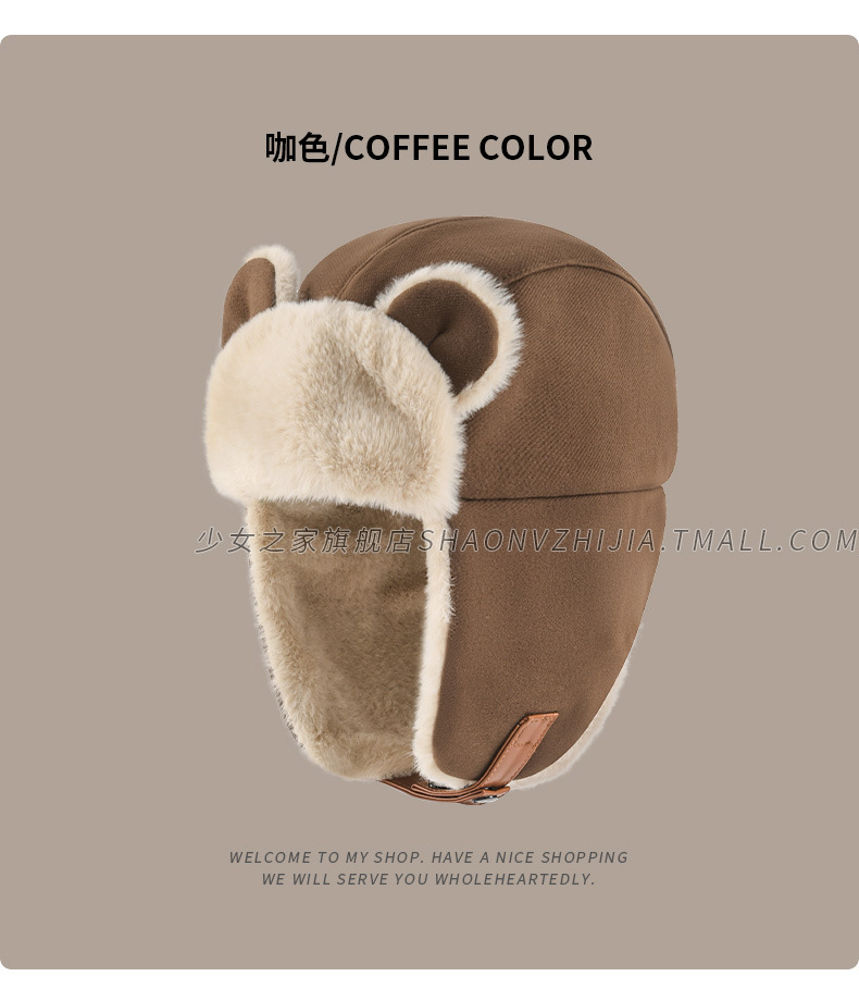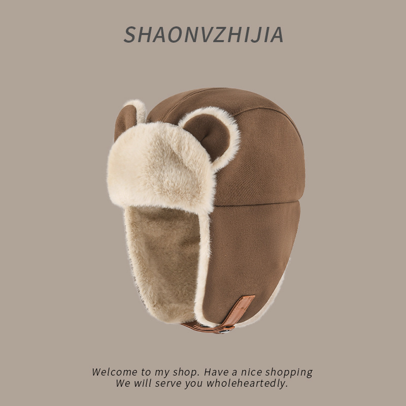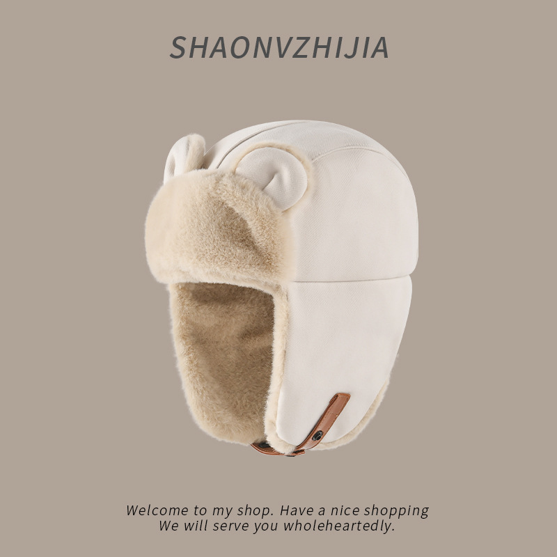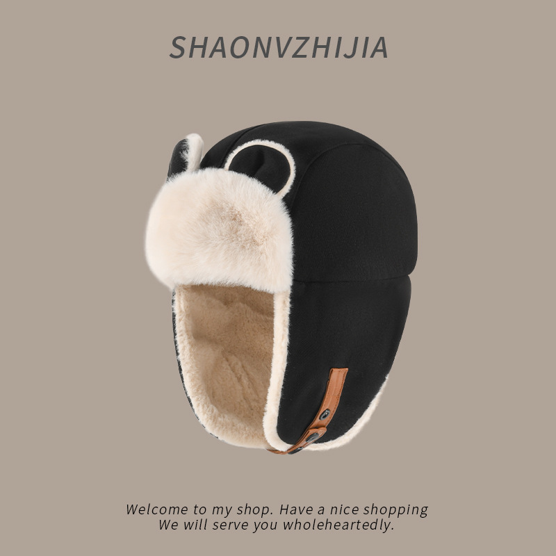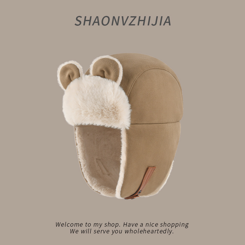새로운 곰 귀 푹신한 모자 여성의 가을과 겨울 사이클링 방풍 두꺼운 따뜻한 귀 보호 냉방성 레이 펑 캡스토어 가기