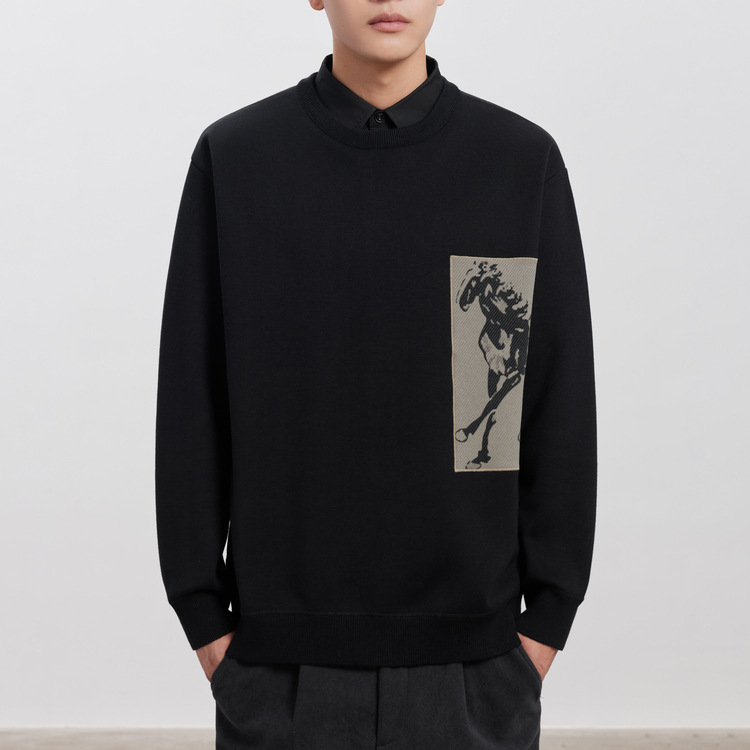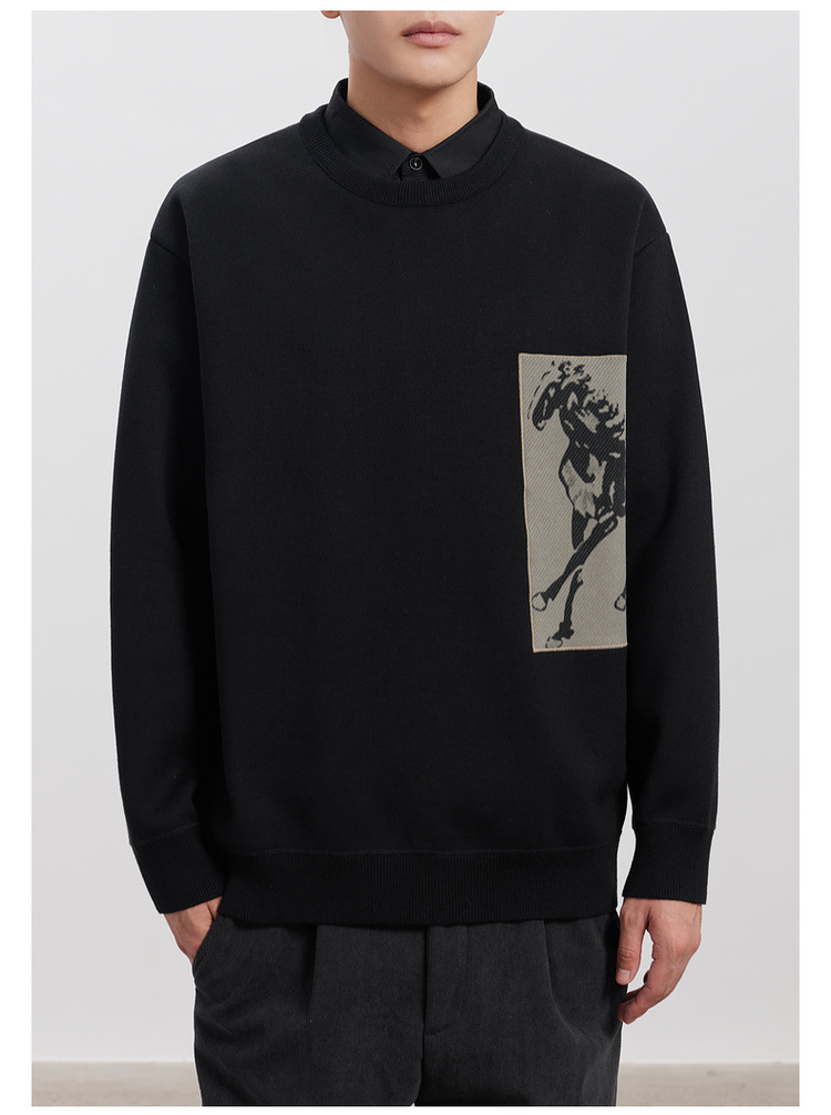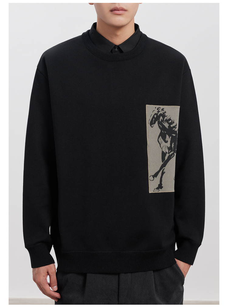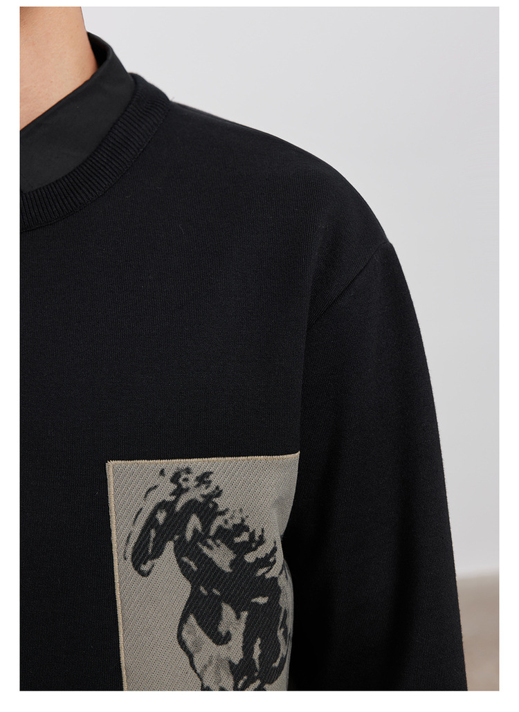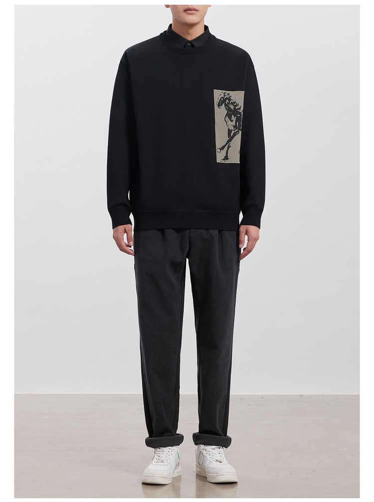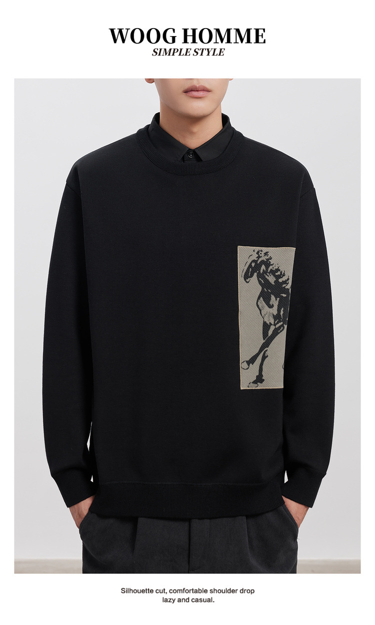 WOOG2005 남성 가짜 투피스 셔츠 칼라 스웨터 남성용 2024 가을과 겨울 새로운 패션 다목적 스웨터스토어 가기