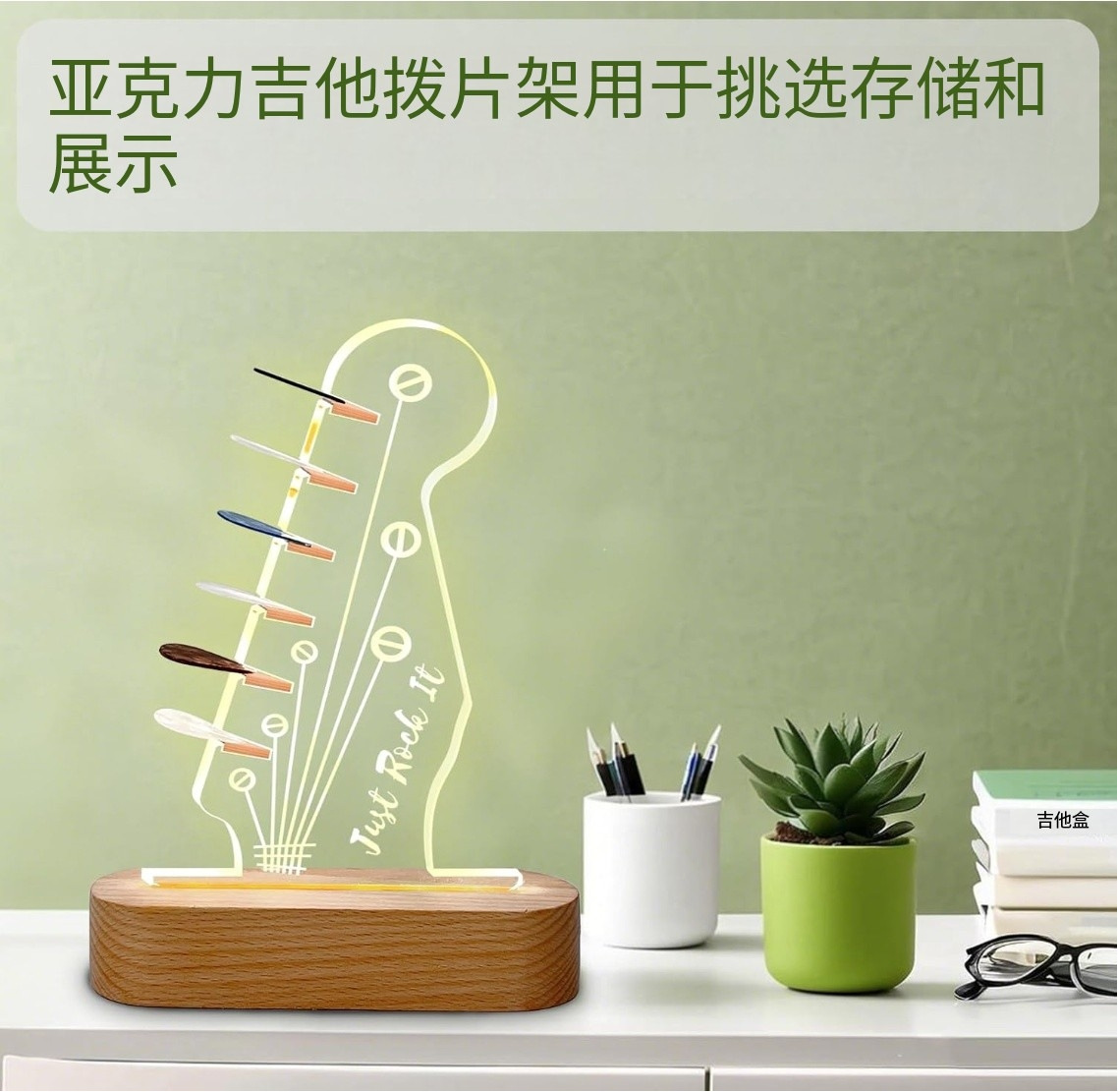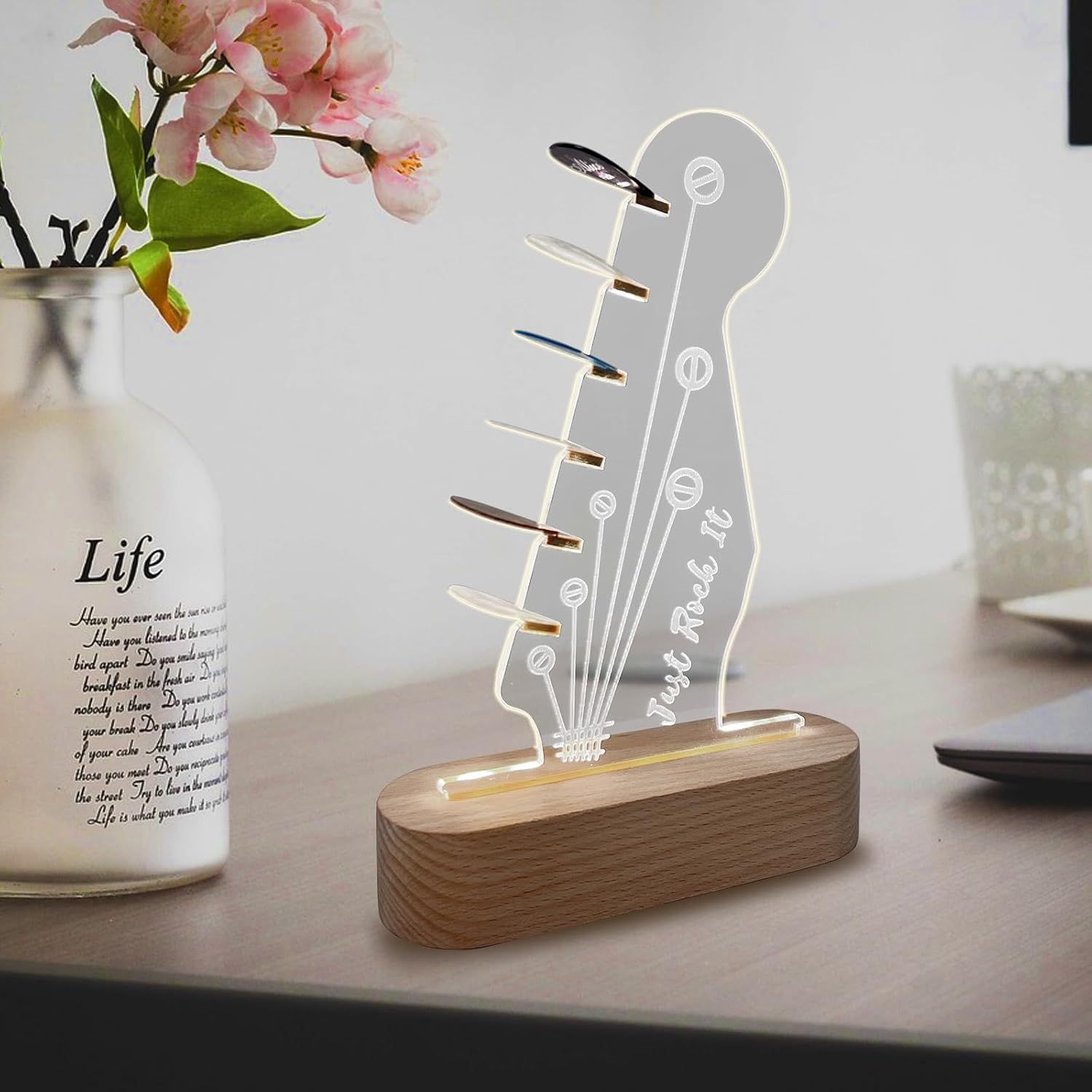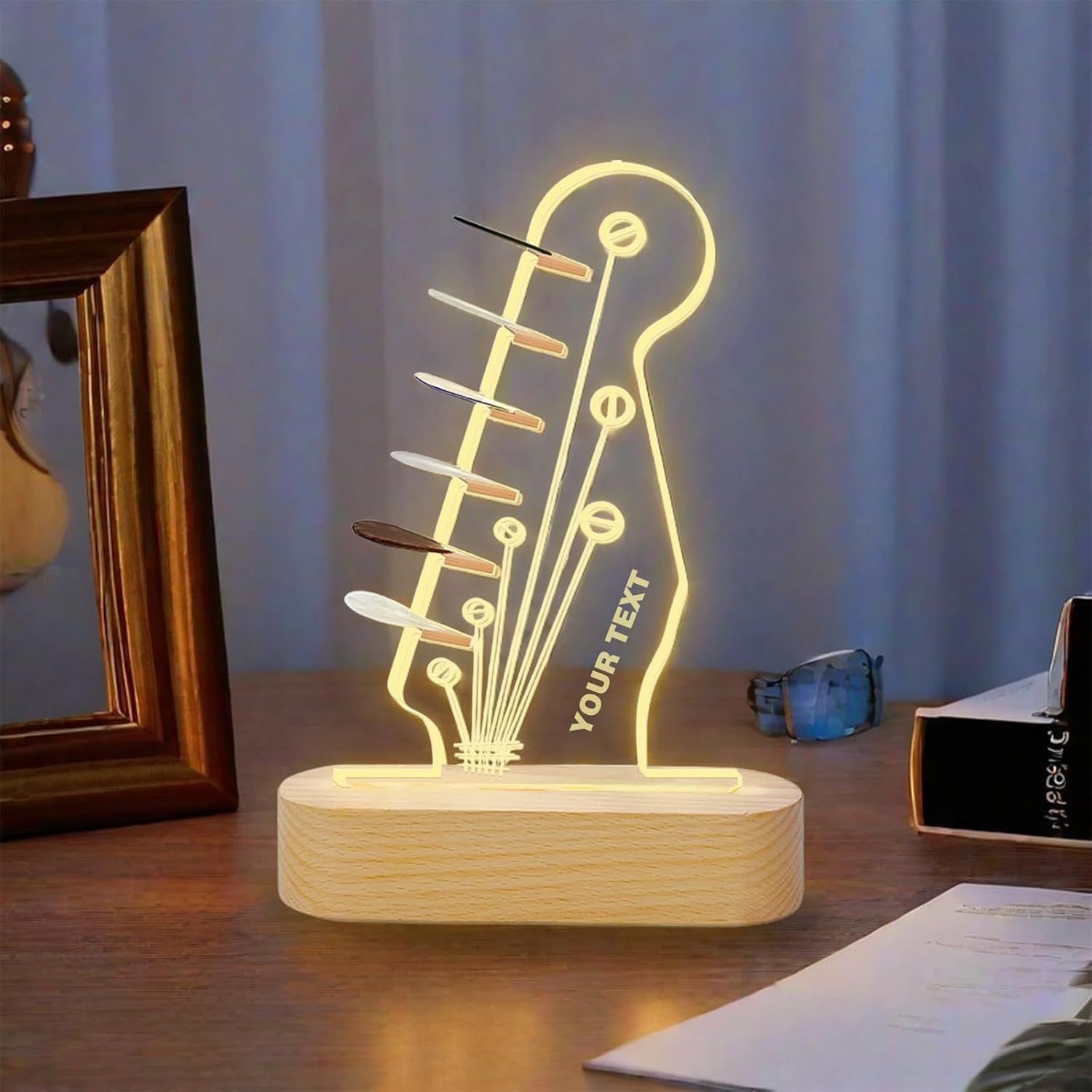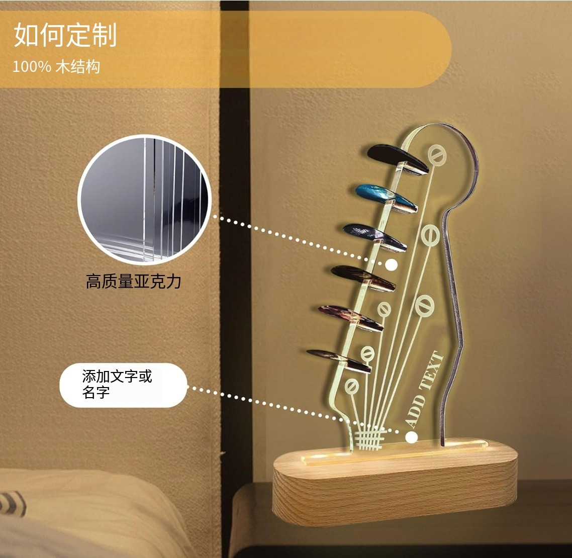 국경 간 신제품 분위기 3D 밤 빛 나무 기타 선택 저장 랙 아크릴 프로젝션 램프 창조적 인 선물 램프