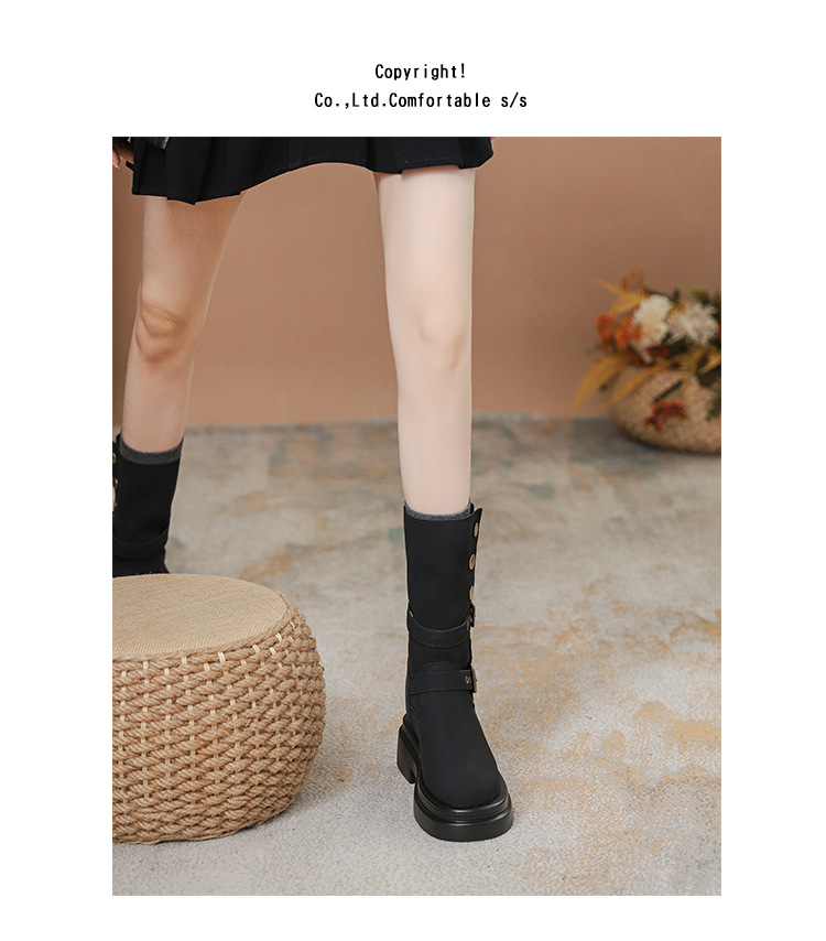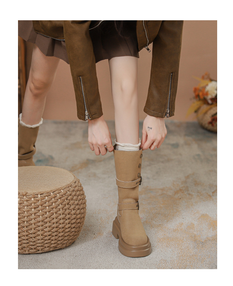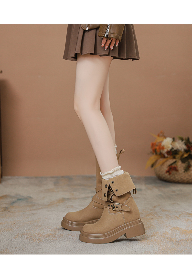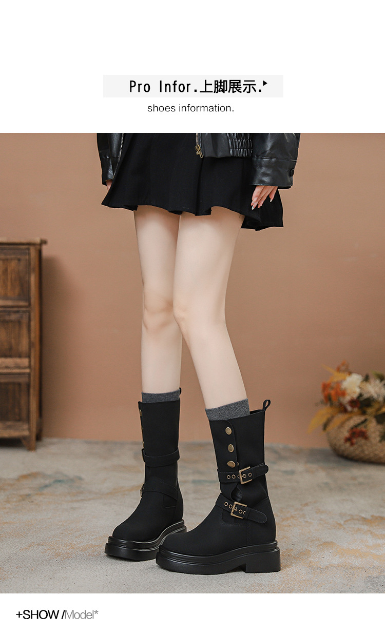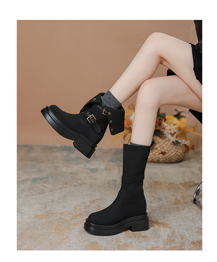 내부 높이 증가 영국 스타일 마틴 부츠 여성의 새로운 가을 및 겨울 기모 레트로 투웨어 미드 솔 부츠 두꺼운 하단 짧은 부츠스토어 가기
