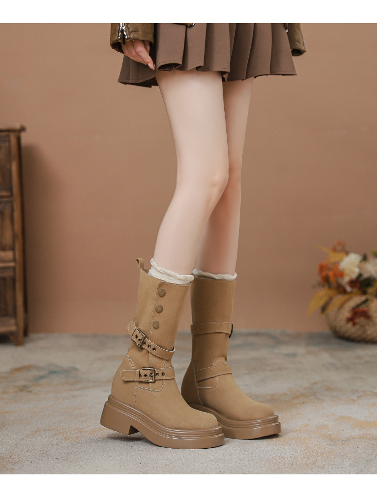 내부 높이 증가 영국 스타일 마틴 부츠 여성의 새로운 가을 및 겨울 기모 레트로 투웨어 미드 솔 부츠 두꺼운 하단 짧은 부츠