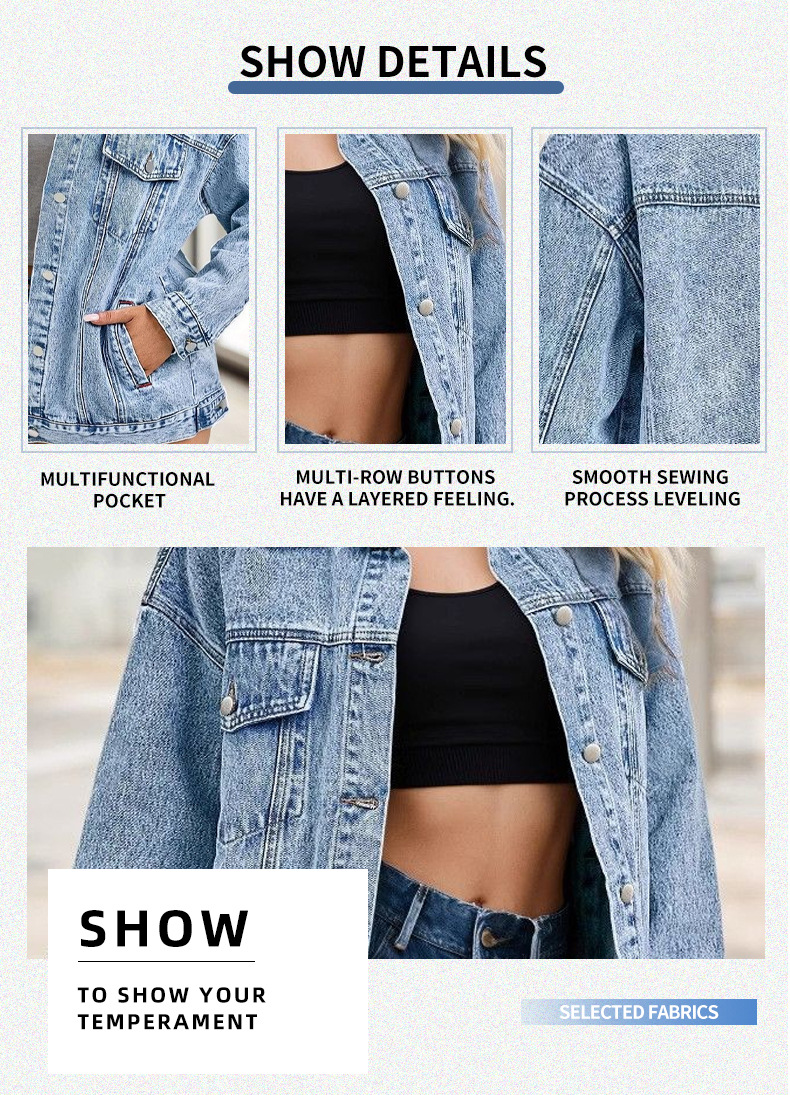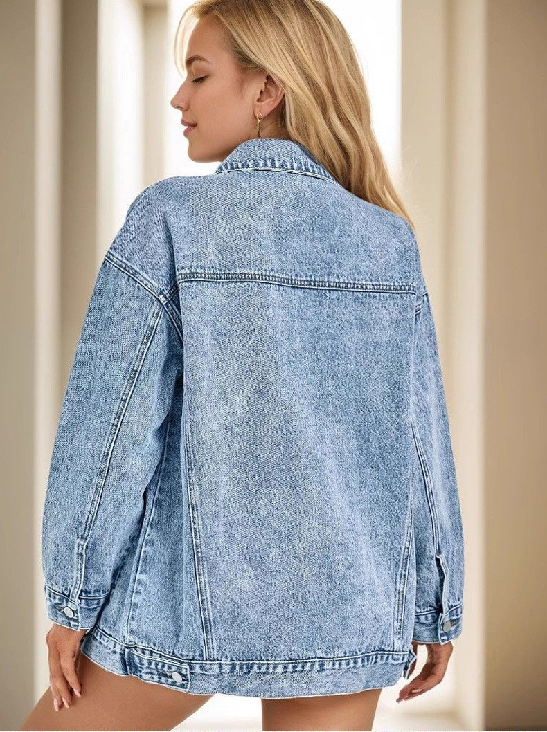 크로스보더 하이스트리트 아메리칸 스타일 데님 재킷 여성용 봄 가을 겨울 루즈핏 중간 길이 캐주얼 재킷 상의 데님 의류스토어 가기
