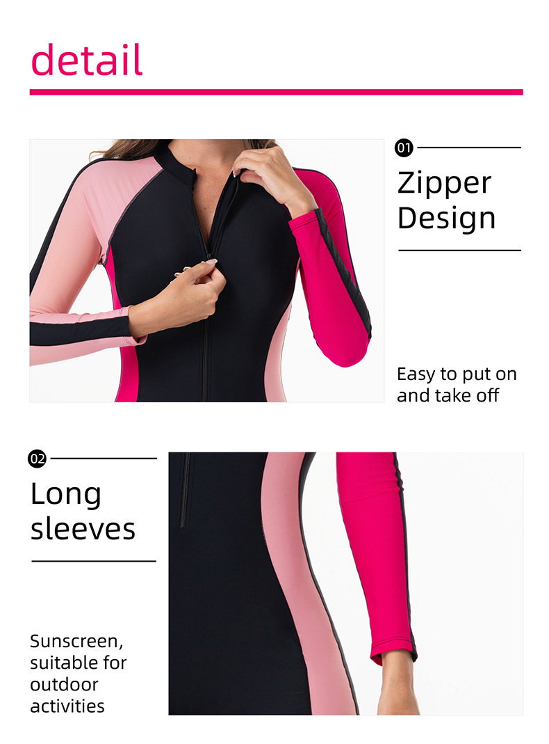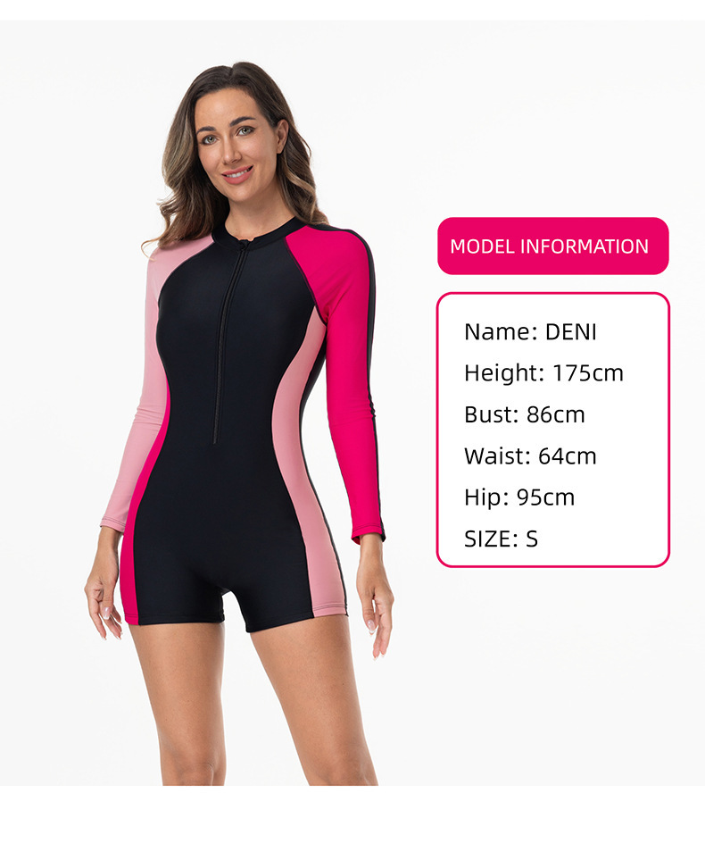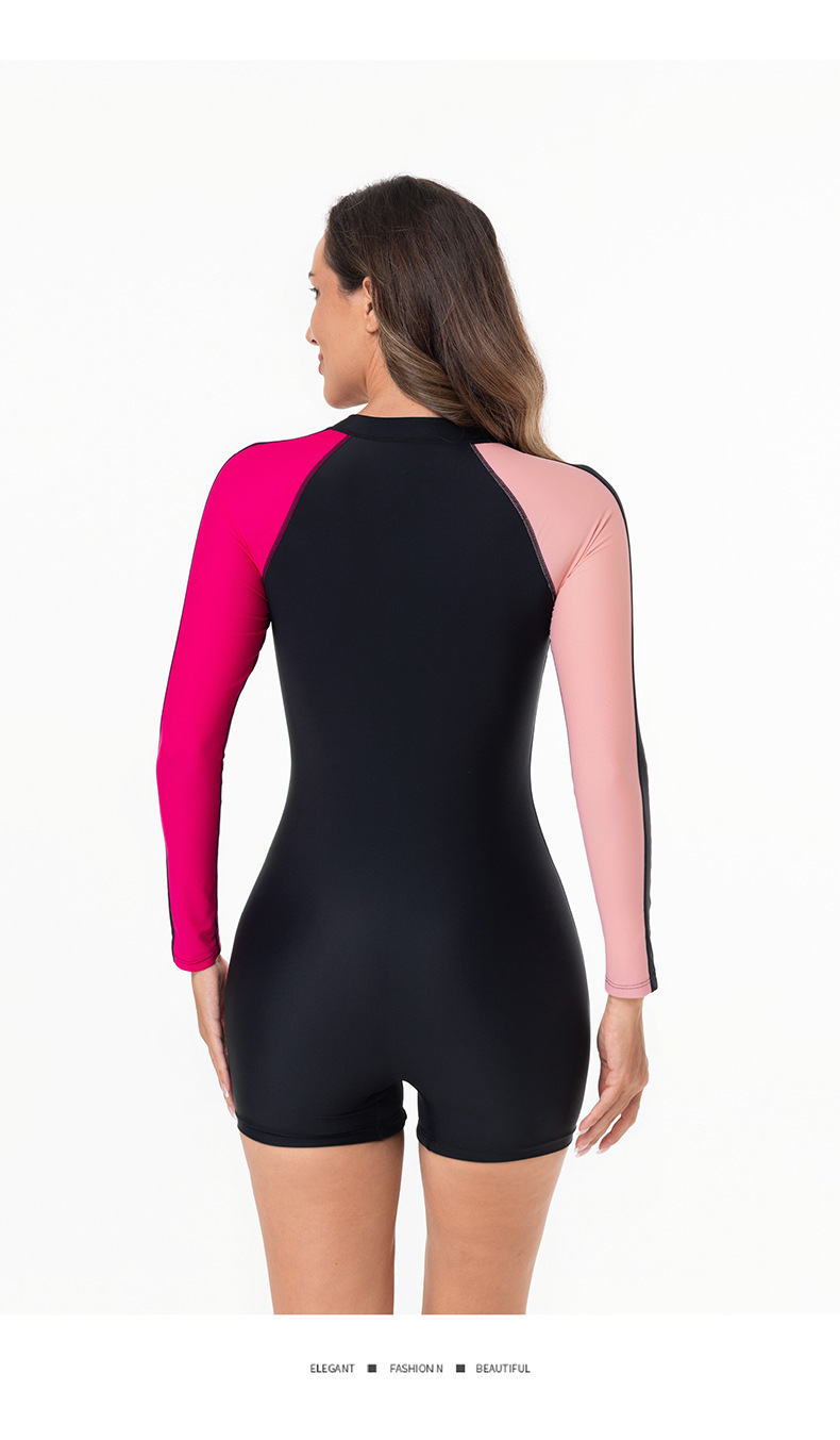 2025 유럽과 미국의 수영복 여성 대외 무역 원피스 긴 소매 서핑 세트 새로운 복서 반바지 다이빙 세트 보수적 인 지퍼 수영복