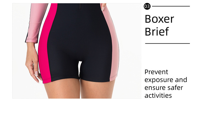2025 유럽과 미국의 수영복 여성 대외 무역 원피스 긴 소매 서핑 세트 새로운 복서 반바지 다이빙 세트 보수적 인 지퍼 수영복스토어 가기