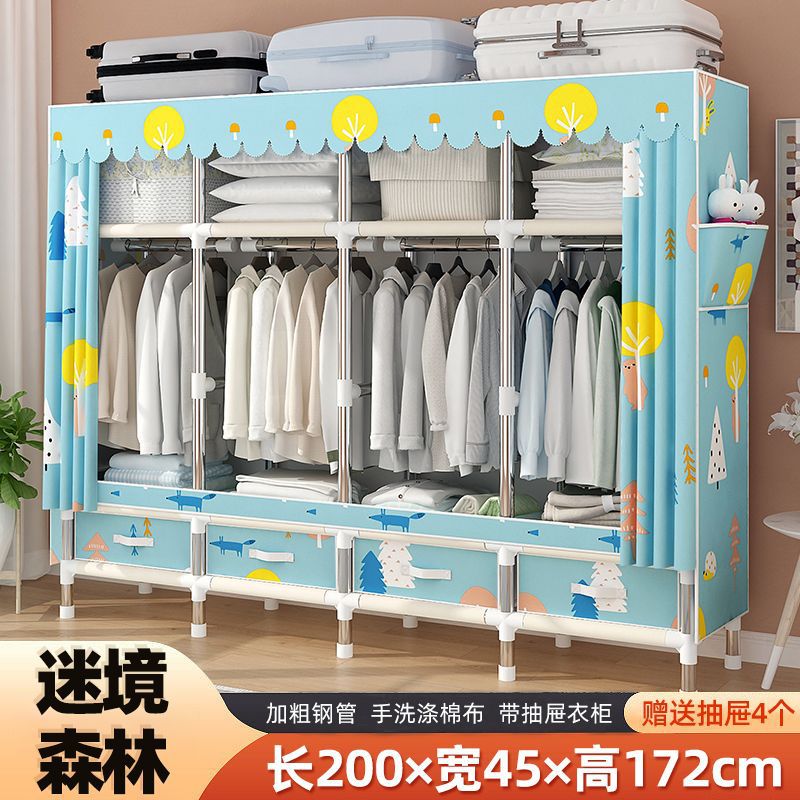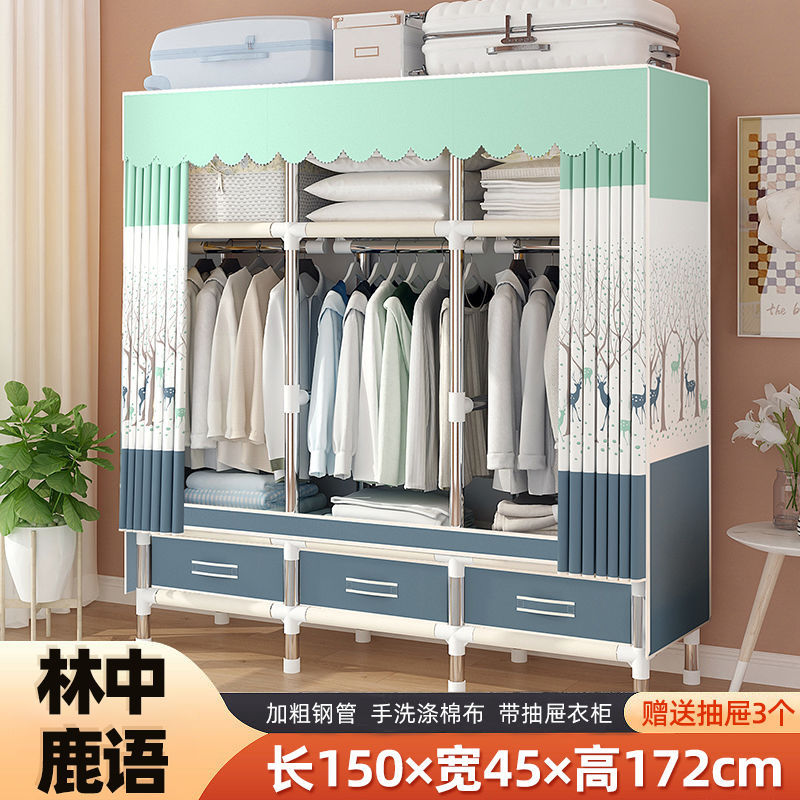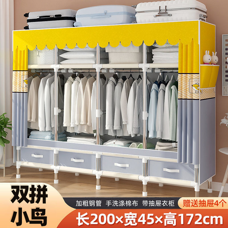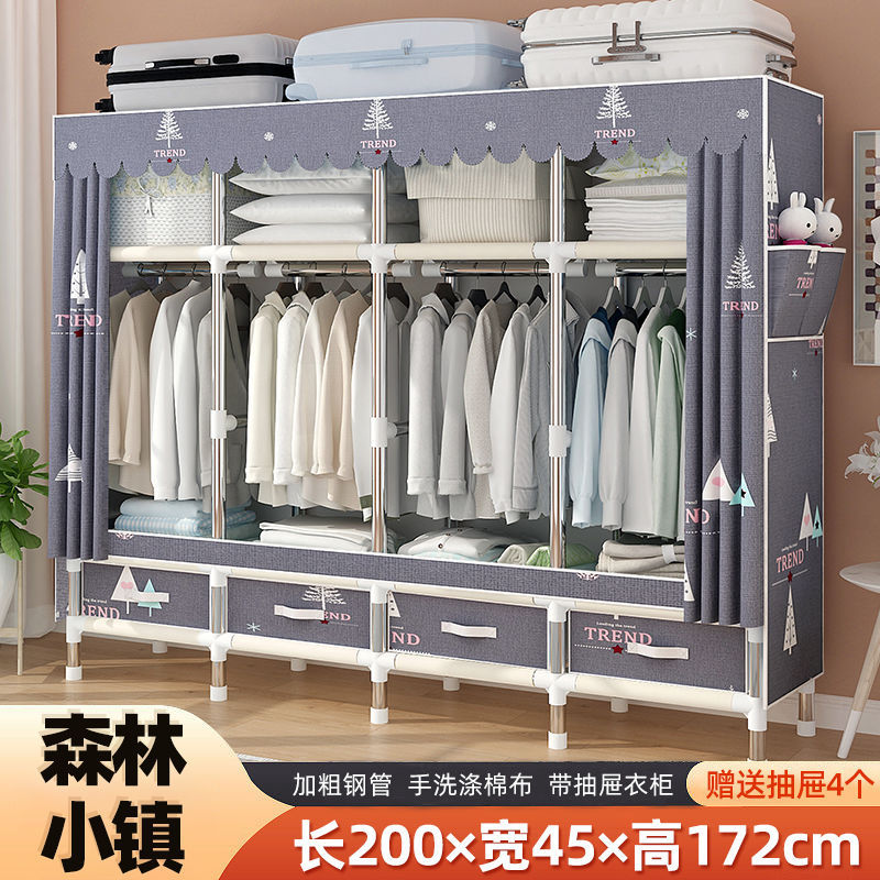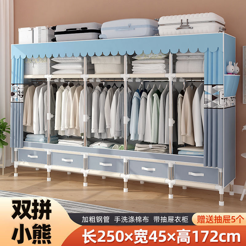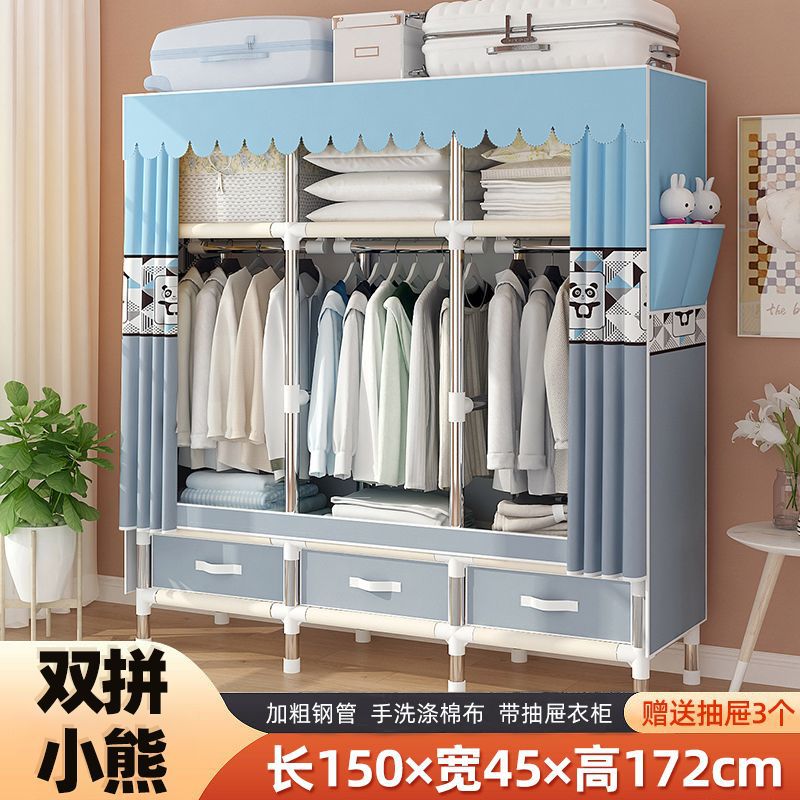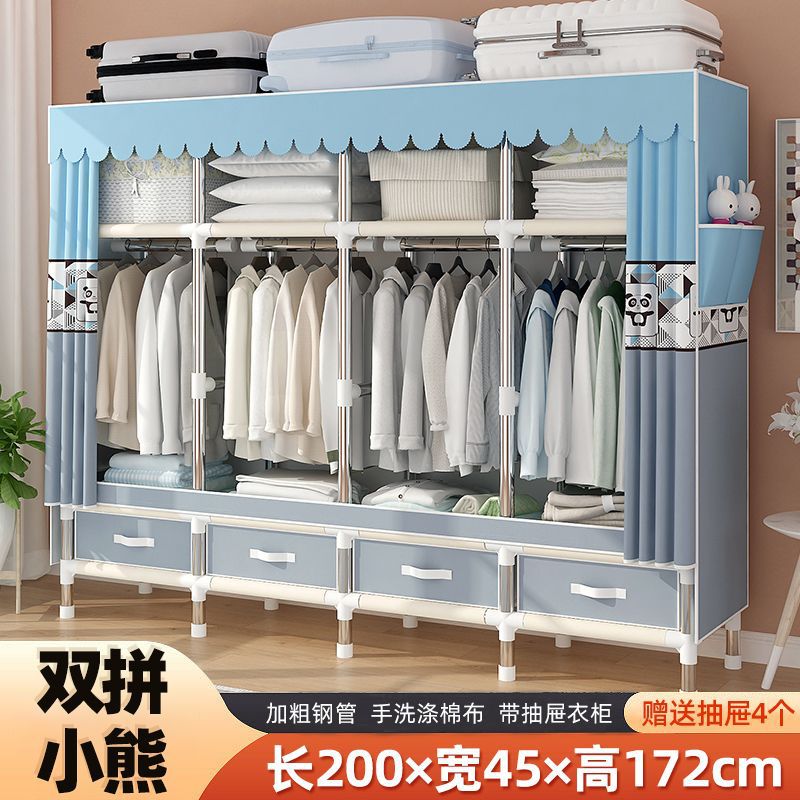 [강화되고 굵은] 가정용 침실 간이천 옷장 지퍼 완전히 닫힌 옷장 강철 프레임 두껍게 높은 베어링 힘스토어 가기