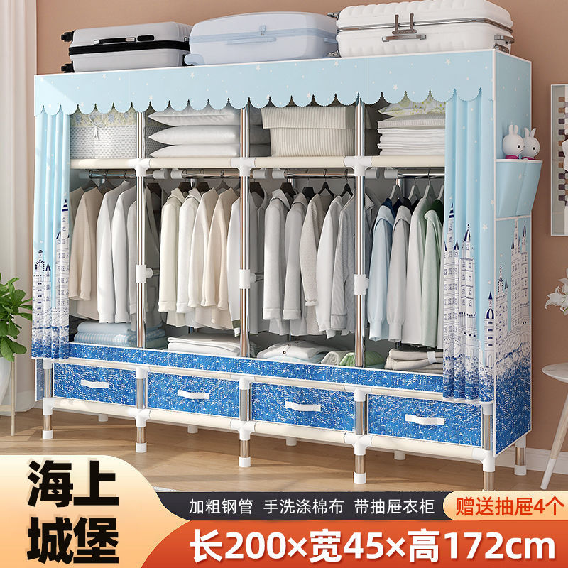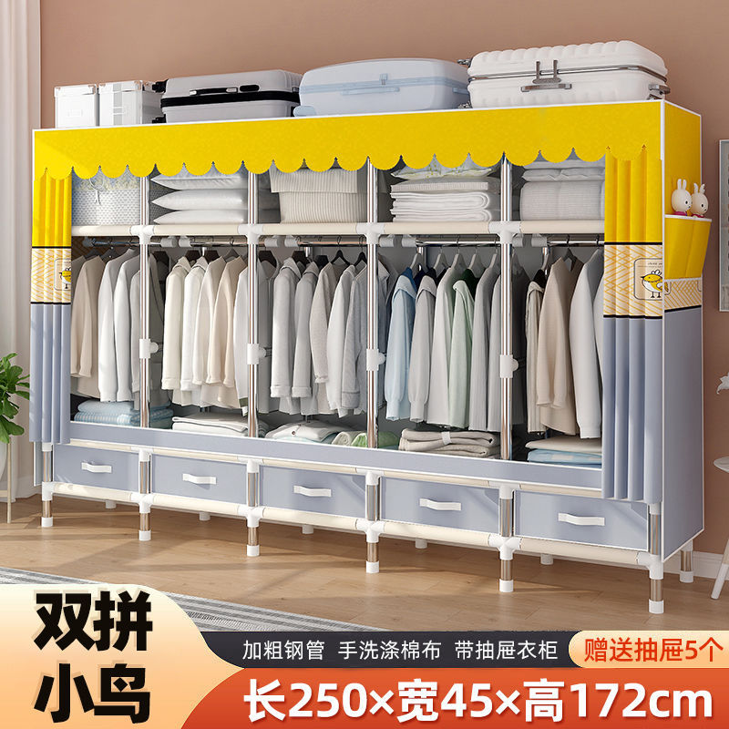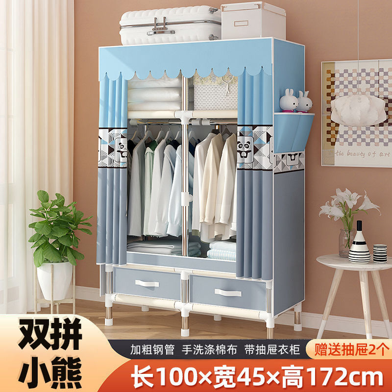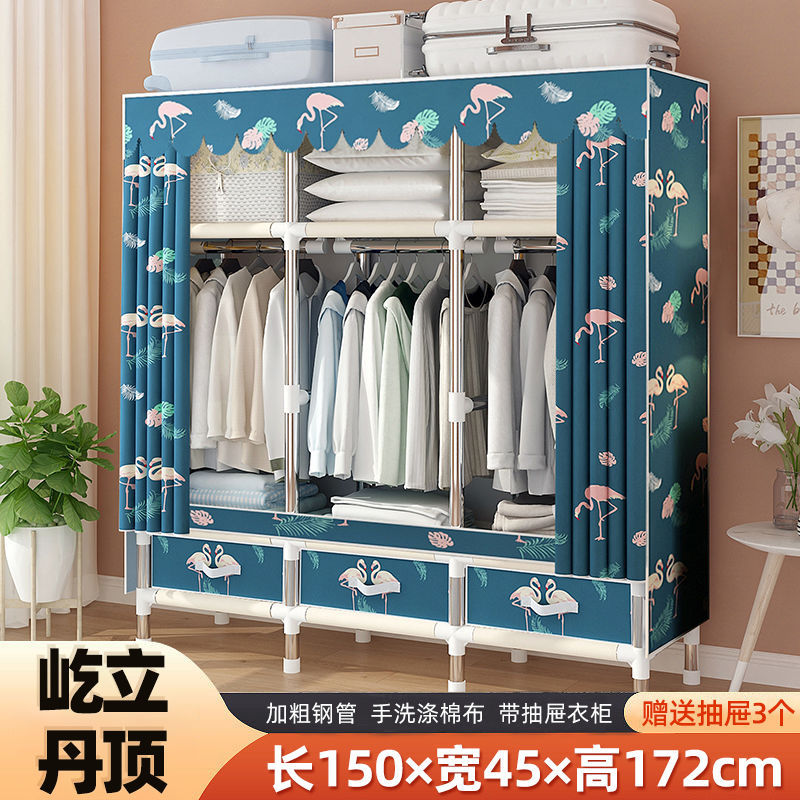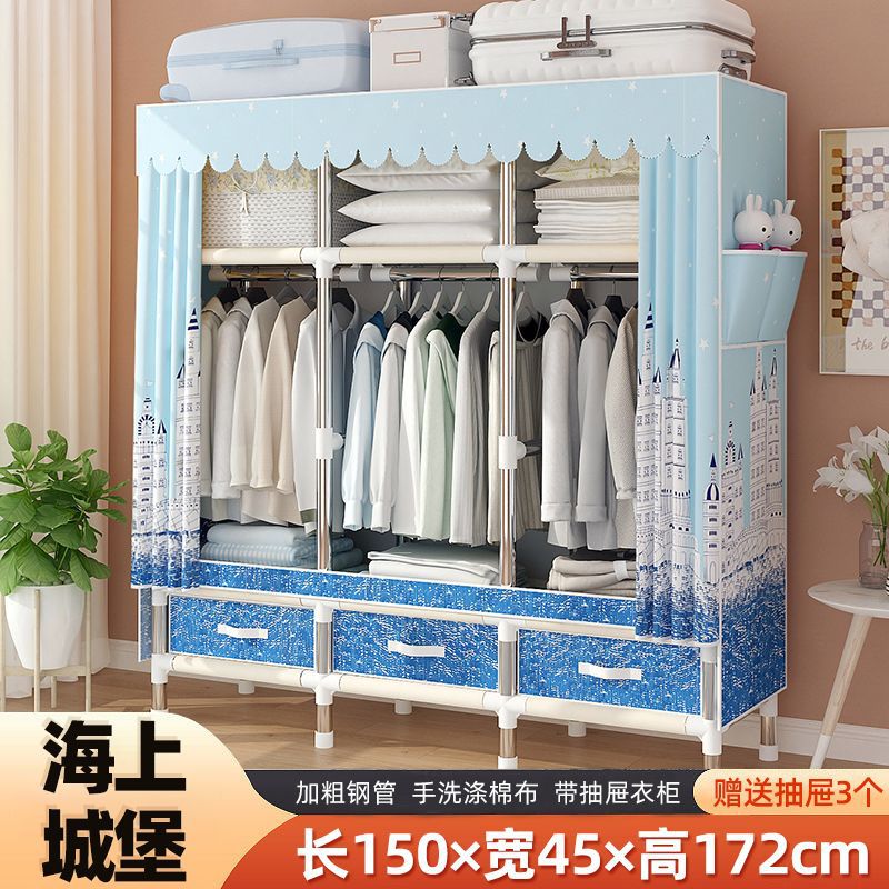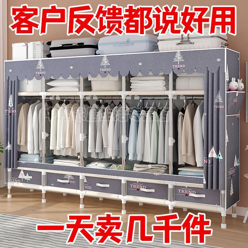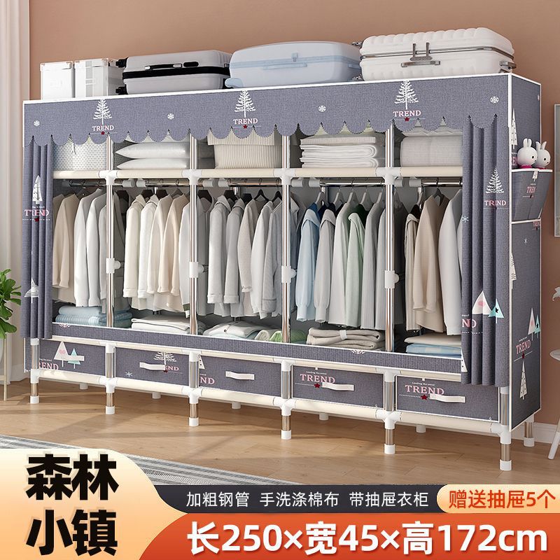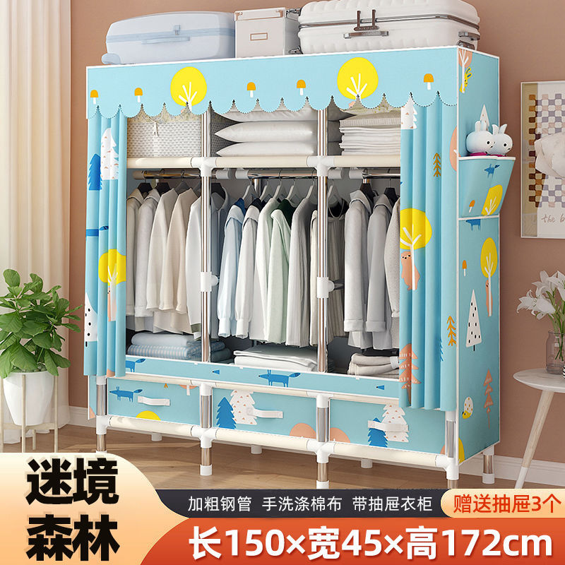 [강화되고 굵은] 가정용 침실 간이천 옷장 지퍼 완전히 닫힌 옷장 강철 프레임 두껍게 높은 베어링 힘스토어 가기