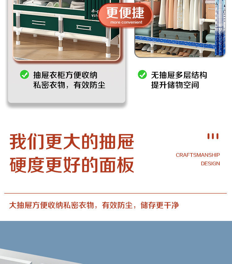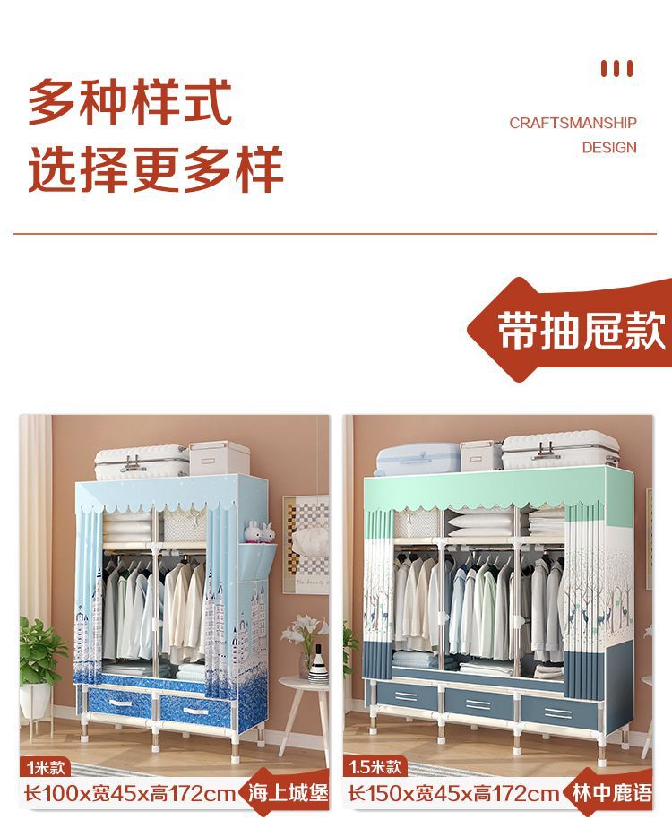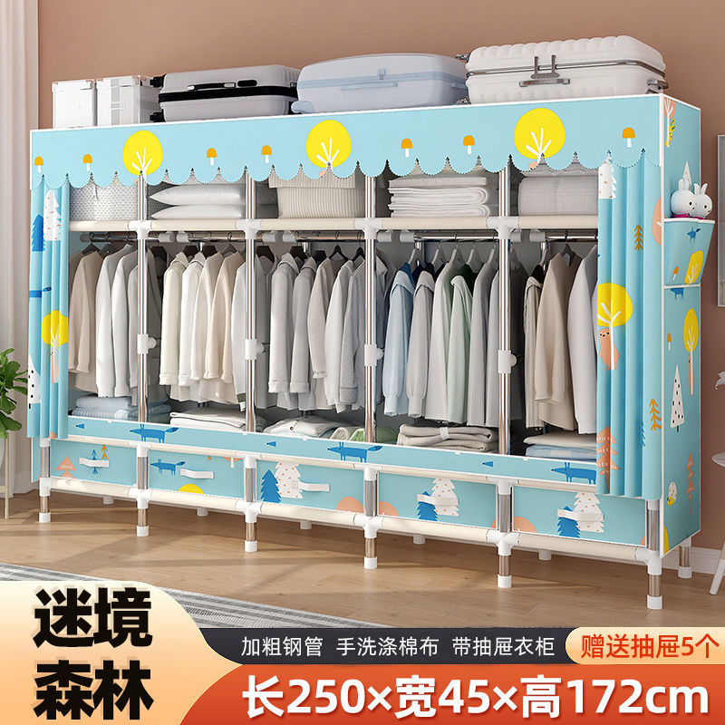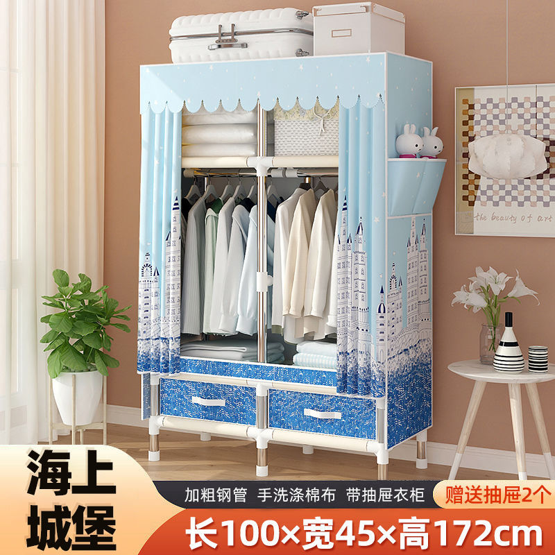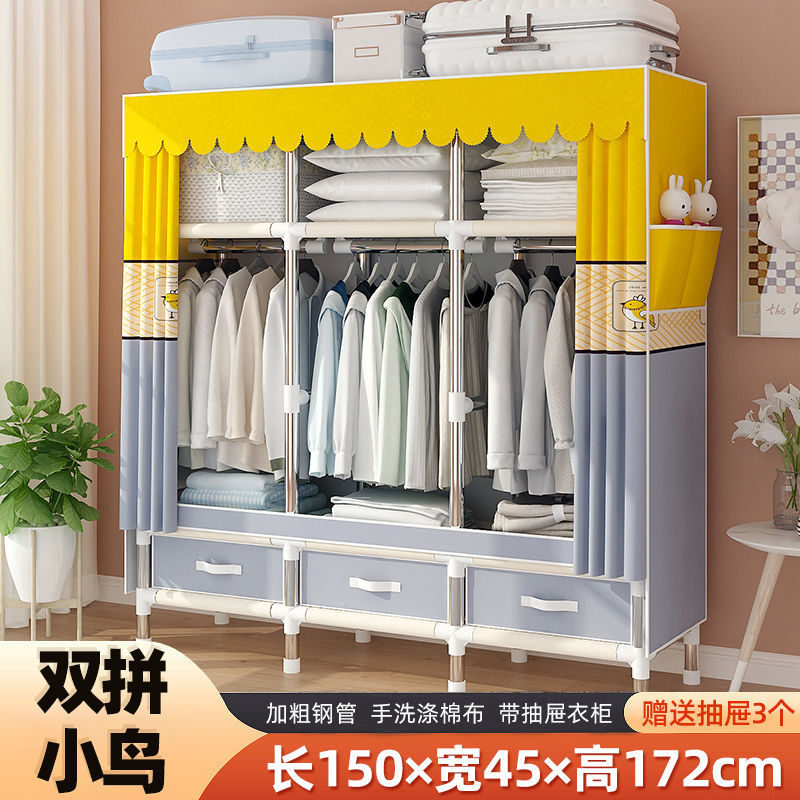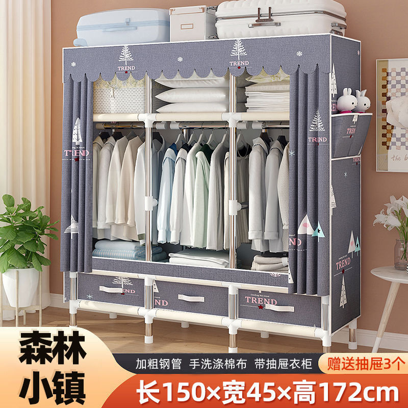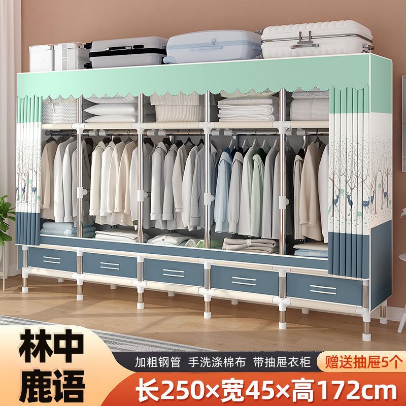 [강화되고 굵은] 가정용 침실 간이천 옷장 지퍼 완전히 닫힌 옷장 강철 프레임 두껍게 높은 베어링 힘스토어 가기
