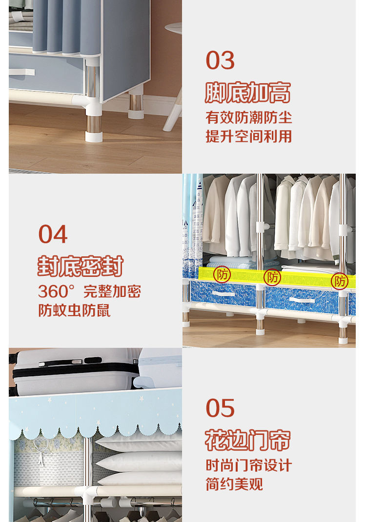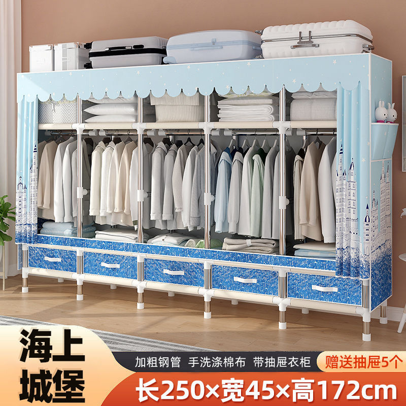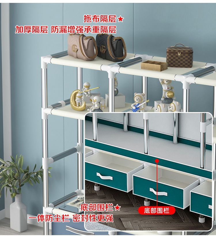 [강화되고 굵은] 가정용 침실 간이천 옷장 지퍼 완전히 닫힌 옷장 강철 프레임 두껍게 높은 베어링 힘