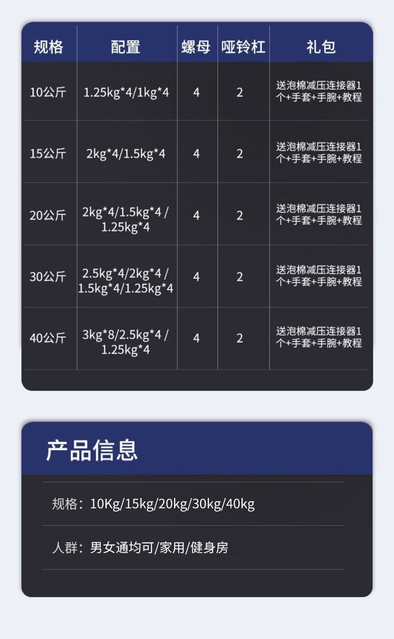 덤벨 남성 피트니스 홈 운동 장비 세트 조합 바벨 여성용 가방 접착제 조절 가능한 무게 덤벨 쌍