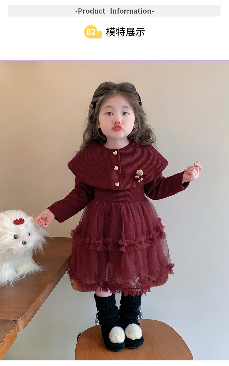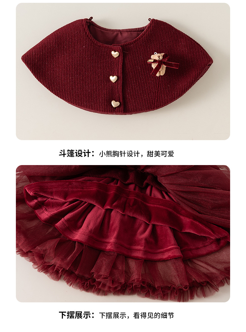 소녀 기모 원피스 가을과 겨울 서양식 붉은 모직 원피스 베일 겨울 원피스 어린이 곰 목도리 공주 원피스스토어 가기