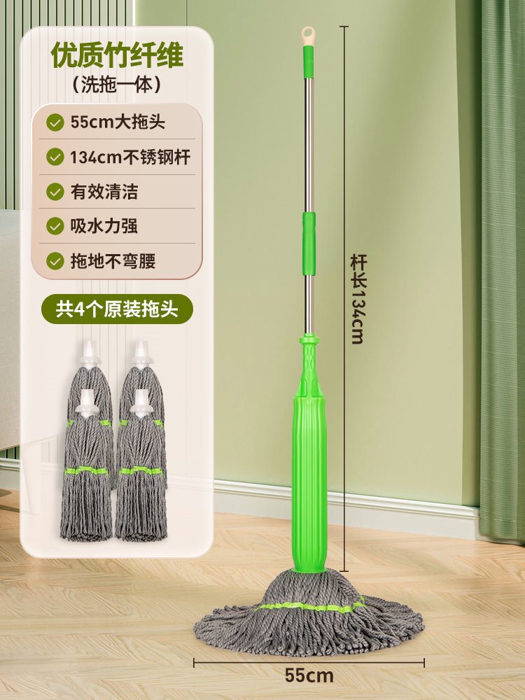 • 스퀴즈 물걸레⭐대나무 섬유⭐총 4개의 천 [확대된 걸레 헤드 + 스테인레스 스틸 막대]