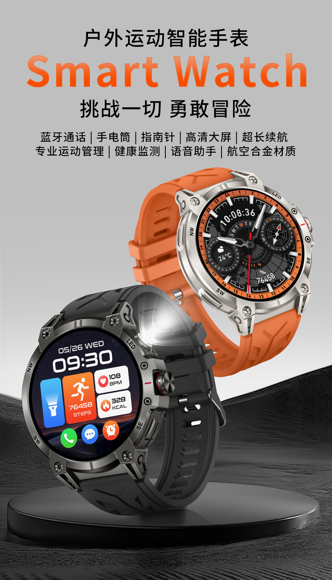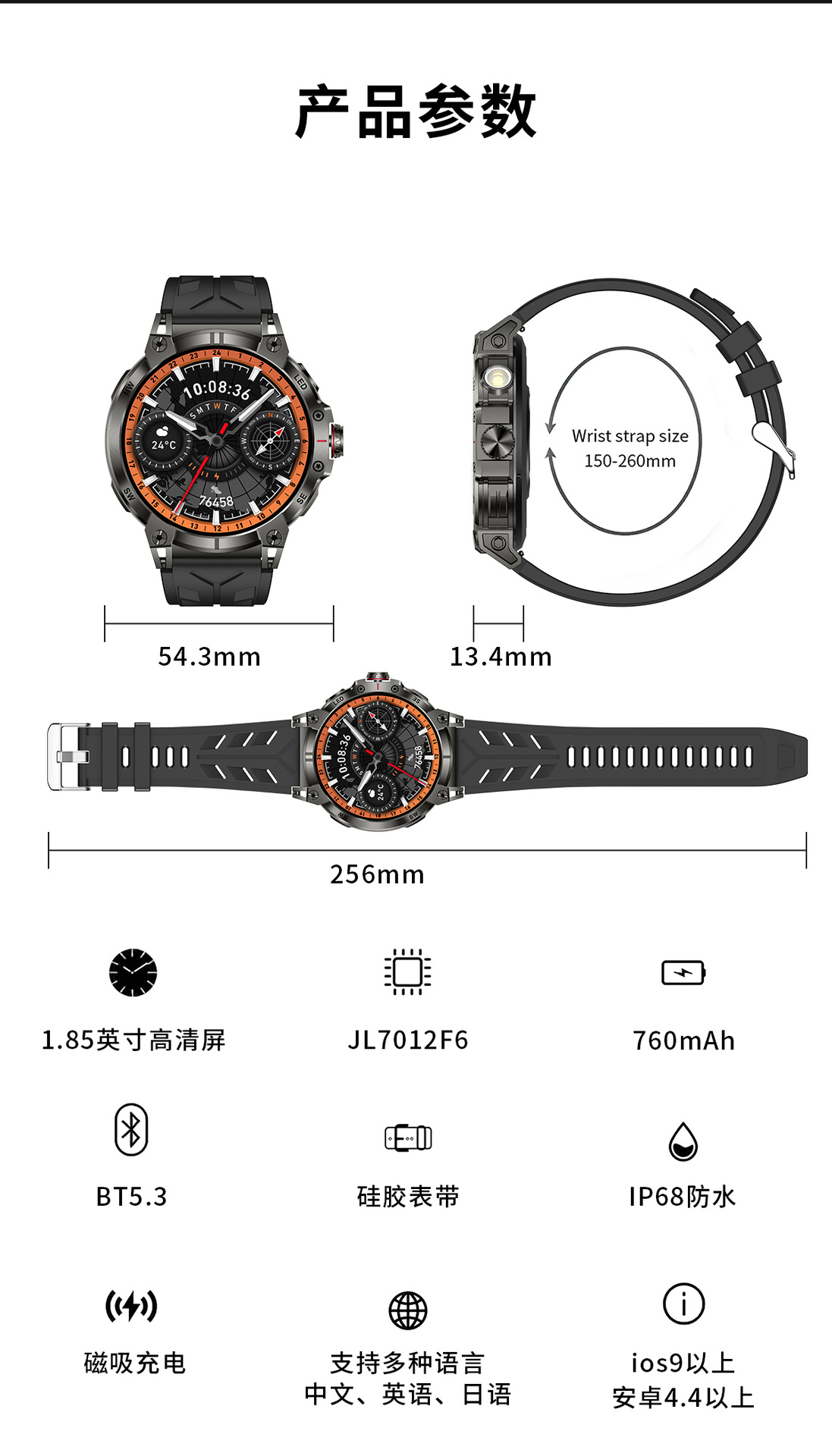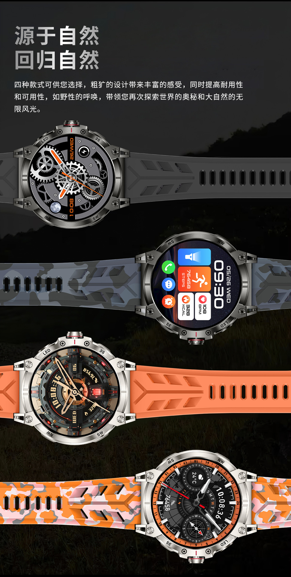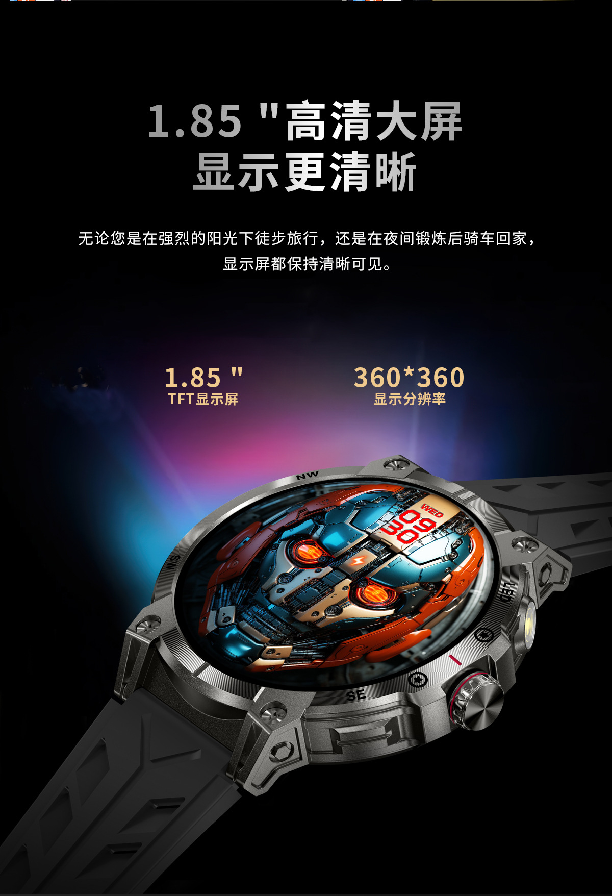 새로운 KC89 스마트 시계 블루투스 전화 1.8 대형 스크린 심박수 혈액 산소 LED 조명 야외 방수 스포츠